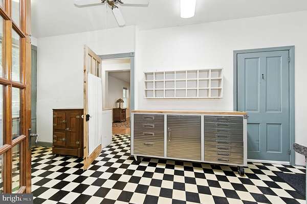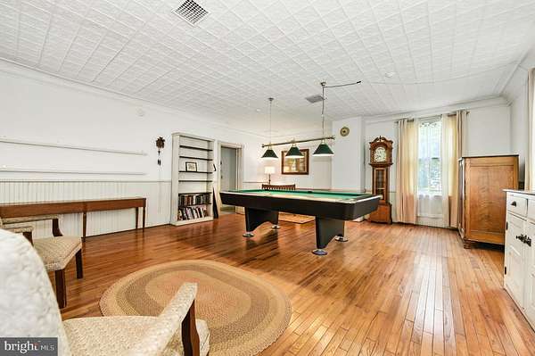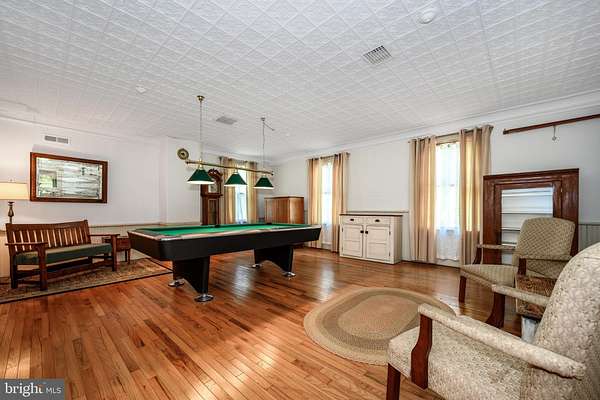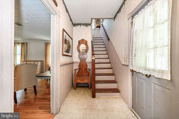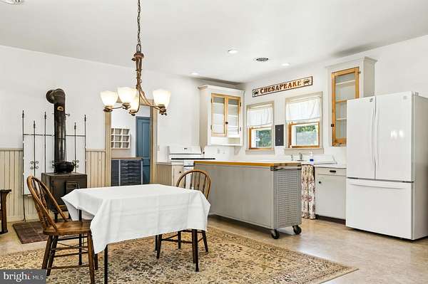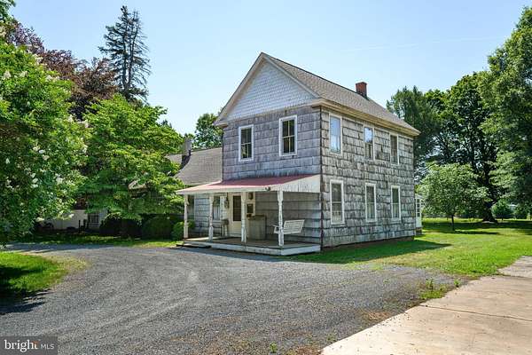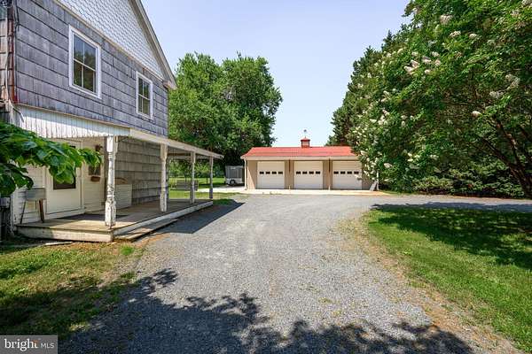 This home was formerly the old Worton Elementary schoolhouse and still retains some of the original features, such as tin ceilings in the living room. The main level has a spacious living room with wood floors, huge kitchen with wood stove, a main level bedroom with a sitting room and full bath with a walk-in shower, and additional hall bath with laundry, several additional rooms and 2 screened porches. The second level has 2 bedrooms and a full bath. You can park in the circle drive or park in one of the bays in the detached 3 car garage. Situated on just over 4 acres with right away access from Worton Road. Propane heat and central A/C will keep you toasty in the winter and cool in the summer. The exterior is mainly cedar siding that will require some TLC.