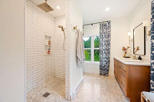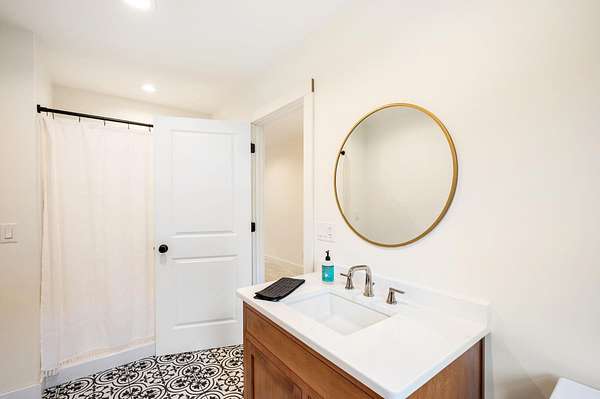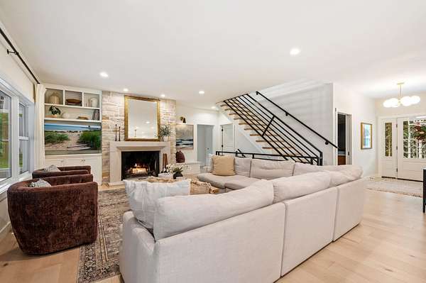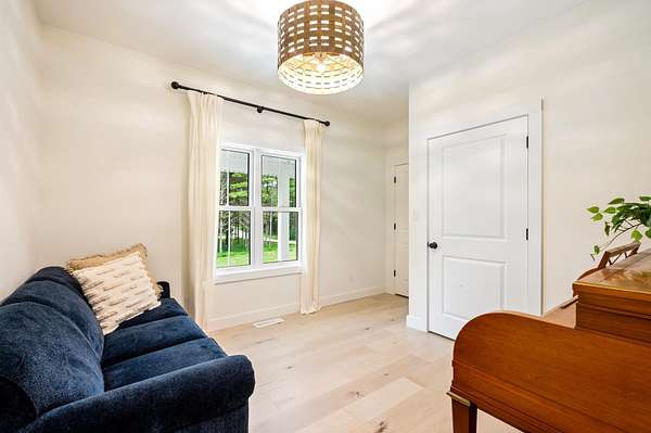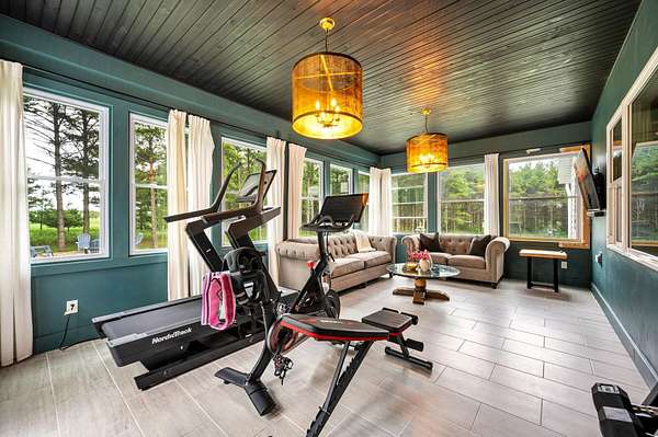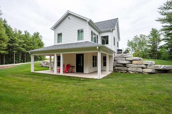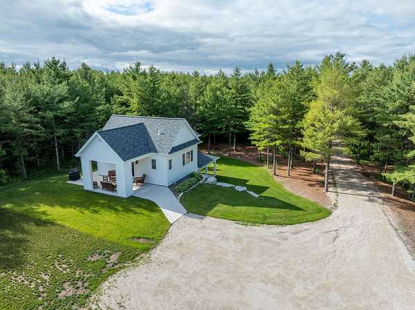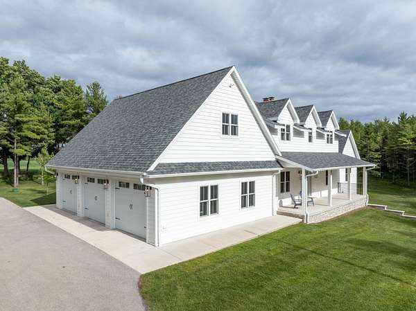 Welcome home to the perfect new build on 4 acres just outside of Sister Bay. First floor primary with large walk in closet and spa-like bathroom. Additional space includes an office, upper flex/play space and an additional guest suite above garage w/ private full bath. Unfinished basement has 9' ceilings completed stone fireplace and plumbed for an additional full bath. Furnished 1 bed/1 bath lux guest house on site w/ walk out basement perfect for guests or rental income. Designed for peace of mind with maintenance-free and weather-durable Everlast siding. Radiant in-floor heat extends through garage, sunroom/gym, and basement for maximum comfort. Enjoy the convenience of town with a private & forested setting.