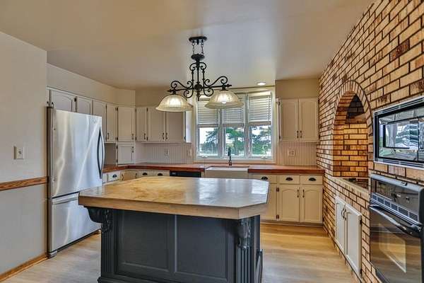 This charming 4-bedroom, 2-bath home sits on a spacious 1.80-acre lot just five miles from Colby and only 30 minutes from Rib Mountain. Originally built in the early 1900s, the home was fully remodeled in the 1980s, including updated electrical and plumbing, blending classic farmhouse character with modern comforts. Inside, you'll find a generous layout starting with a large front entryway, coat closet, and a spacious formal living room. The expansive dining room features a built-in coffee bar and hutch with decorative shelving and lighting, perfect for entertaining. The farm-style kitchen is a standout, with white cabinetry, a large center island, a brick hearth surrounding the stove, large pantry, built-in desk, and included appliances--refrigerator, microwave, cooktop, oven, dishwasher, and disposal. The main level also offers a versatile multi-purpose room with a laundry area, complete with included washer and dryer, and look-through to the kitchen area. Upstairs, there are 4 bedrooms, including one that does not have a closet and offers pull-down attic access, making it ideal for an office or guest space. The upper-level bathroom includes a 3/4 shower stall.