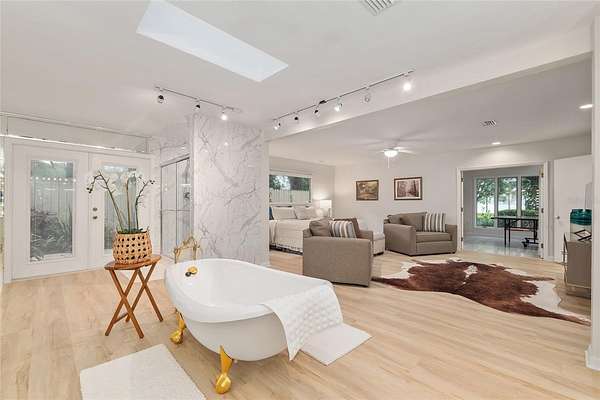 Discover a rare opportunity to own a resort-style family compound on Lake Weir in Marion County, Florida. Situated on 3.44 acres with 147 feet of sandy beachfront, this gated property features two fully furnished homes--one a (1956 yr) 2-bedroom, 1-bath with 1,182 sq. ft., and the other a (1957 yr) 2-bedroom, 2-bath with 1,968 sq. ft. and (2004 yer) attached garage--along with a spacious guest quarters used as flex space above an 4-car garage offering tall ceilings, a wood-burning/gas fireplace, spacious game rooms, and 1 full bathroom all under AC/Heat. Designed for both privacy and recreation, lush landscaping galore & gorgeous trees, the property includes a paved driveway, RV carport, flex space, and extensive concrete walkways, while the lakefront lifestyle is elevated with a dock and private beach. All homes convey furnished. Enjoy the ultimate Florida lakefront experience, separate from the sale: a Supreme ski boat, Jet Ski, ATV, trailer, tubes, and boards can be negotiated. Whether envisioned as a multi-generational estate, vacation property, or investment retreat, this one-of-a-kind waterfront compound offers endless possibilities just minutes from Ocala's shopping, dining, and the World Equestrian Center.