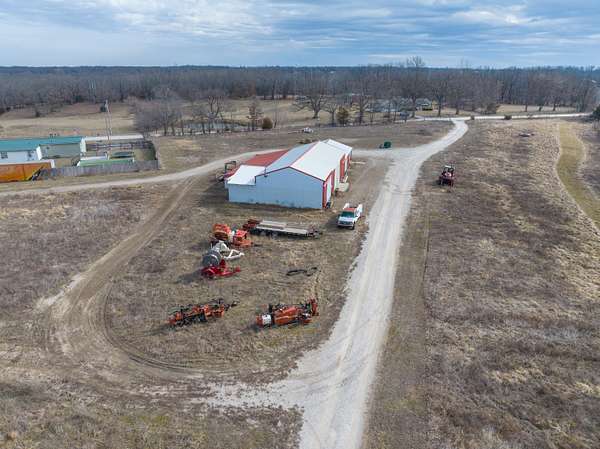 Hwy 24 west, to Hwy JJ. Hwy JJ to County Road 1245. Property begins immediately on the left (red and white shop).