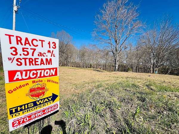 Tract #13: 3.57 Acres, m/l, fronting Harristown Rd w/ former homesite, electric meter base, possible septic, stream w/ waterfall & woods. --- PROPERTY OVERVIEW: This beautiful property offers some of the best land in Russell County - fertile farm fields ideal for cropland or pastureland, plus amazing homesites with an ideal location just minutes from the new Eli exit and just minutes to the Lake! All tracts have blacktop road frontage, electric available and county water along Patterson Rd & a portion of Harristown Rd w/ utility easements in place for accessing all tracts. --- This is part of a LIVE ON THE PROPERTY - ABSOLUTE ESTATE AUCTION at 1075 Patterson Road, Russell Springs, KY --- SATURDAY, APRIL 18TH at 10 A.M. CDT --- No Minimums! No Reserves! Everything Sells Regardless of Price! ---The price indicated does not represent a minimum or maximum amount, it is a nominal amount required for MLS posting. --- Auction Held for the James and Jean Garner Estate ---- 150 Acres m/l to be Offered in 22 Tracts and ANY Combinations (per New Survey) plus Brick House w / Basement and 30' x 52' Detached Metal Garage, (3) Barns, 3 Ponds, Large Spring Fed Stocked Private Lake and Waterfalls, plus Commercial Timber Offered on 3 Tracts! ---- VIEWING: OPEN HOUSE, Saturday, April 11th from 10 A.M. to 12 NOON CDT. View Land and Timber Anytime --- MANNER OF SALE: This is a live, on-site auction, with absentee bidding available by contacting auction company in advance. Tracts of land will be auctioned on an individual basis & then in any combinations using Golden Rule-Wilson's Multi-Parcel Selling System allowing anyone to bid on any tract or combination of tracts at any time. This allows bidders to make or break a combination, ultimately allowing purchasers to bid only on the tract / tracts they want and allowing individual tract bidders the ability to defend their bids! Commercial timber will be offered separately & in combinations on Tracts 14, 15 & 22 ONLY. --- SEE FULL TERMS & DETAILS at our Company Website. --- Remember the date Saturday, April 18, 2026 at 10 A.M. CDT at the property!