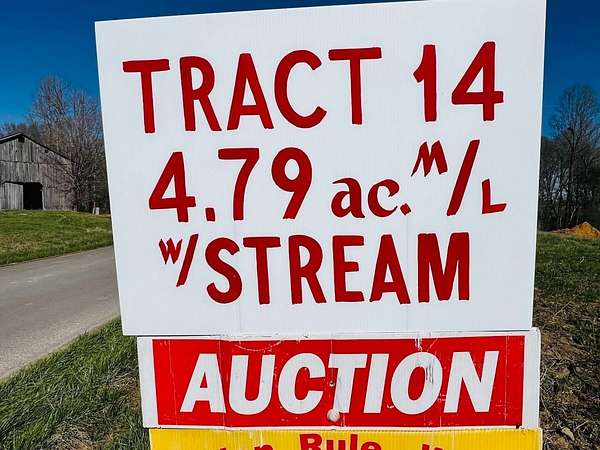 Tract #14: 4.79 Acres, m/l, fronting Harristown Rd w/ stream, waterfall & Commercial Timber --- PROPERTY OVERVIEW: This beautiful property offers some of the best land in Russell County - fertile farm fields ideal for cropland or pastureland, plus amazing homesites with an ideal location just minutes from the new Eli exit and just minutes to the Lake! All tracts have blacktop road frontage, electric available and county water along Patterson Rd & a portion of Harristown Rd w/ utility easements in place for accessing all tracts. --- This is part of a LIVE ON THE PROPERTY - ABSOLUTE ESTATE AUCTION at 1075 Patterson Road, Russell Springs, KY --- SATURDAY, APRIL 18TH at 10 A.M. CDT --- No Minimums! No Reserves! Everything Sells Regardless of Price! ---The price indicated does not represent a minimum or maximum amount, it is a nominal amount required for MLS posting. --- Auction Held for the James and Jean Garner Estate ---- 150 Acres m/l to be Offered in 22 Tracts and ANY Combinations (per New Survey) plus Brick House w / Basement and 30' x 52' Detached Metal Garage, (3) Barns, 3 Ponds, Large Spring Fed Stocked Private Lake and Waterfalls, plus Commercial Timber Offered on 3 Tracts! ---- VIEWING: OPEN HOUSE, Saturday, April 11th from 10 A.M. to 12 NOON CDT. View Land and Timber Anytime --- MANNER OF SALE: This is a live, on-site auction, with absentee bidding available by contacting auction company in advance. Tracts of land will be auctioned on an individual basis & then in any combinations using Golden Rule-Wilson's Multi-Parcel Selling System allowing anyone to bid on any tract or combination of tracts at any time. This allows bidders to make or break a combination, ultimately allowing purchasers to bid only on the tract / tracts they want and allowing individual tract bidders the ability to defend their bids! Commercial timber will be offered separately & in combinations on Tracts 14, 15 & 22 ONLY. --- SEE FULL TERMS & DETAILS at our Company Website. --- Remember the date Saturday, April 18, 2026 at 10 A.M. CDT at the property!