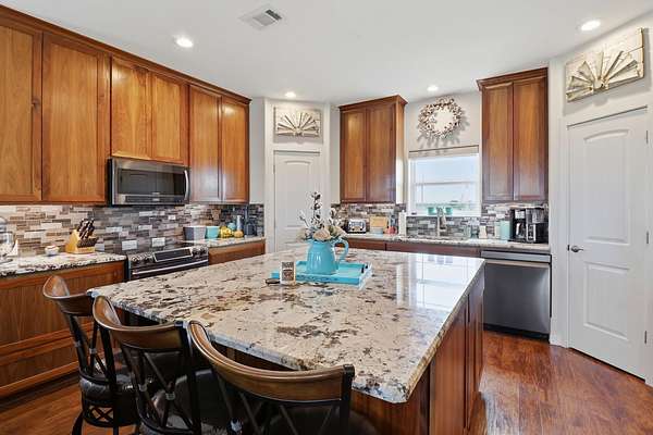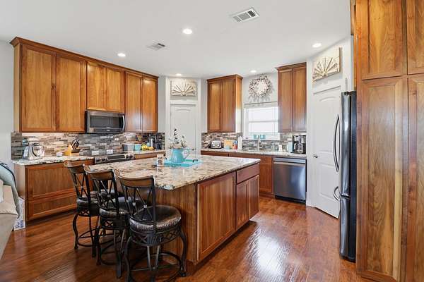 - Breakfast Bar, Granite Counters, High Ceilings, Pantry, Split Bedroom, Walk-In Closet(s)