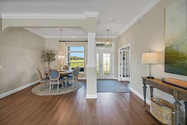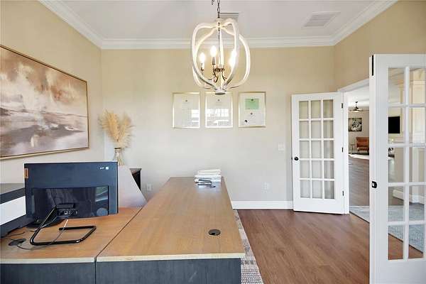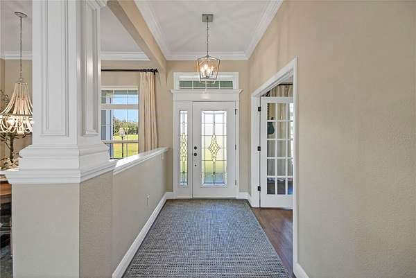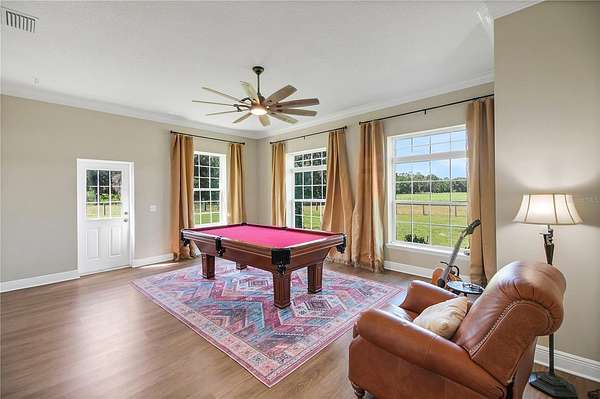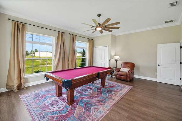 Country living at its finest! Nestled on over 10+ lush and mostly cleared acres in desirable Oxford, this custom 4-bedroom, 3-bath salt water pool home with bonus room is a true showstopper. Built in 2021 with BLOCK construction and Hardieboard siding, the home offers over 2,700 sq. ft. of thoughtfully designed living space. Step inside to find luxury vinyl flooring, crown molding, high ceilings, and 5-inch baseboards throughout the main areas. The open, split floor plan is ideal for entertaining, featuring a chef-inspired kitchen with quartz countertops, stainless steel appliances, white cabinetry, a farmhouse sink, crown accents, and a cabinet pantry. The spacious living room overlooks the sparkling saltwater pool and wide-open views beyond. The primary suite is filled with natural light and includes a spa-like bath with dual sinks, granite countertops, a corner soaking tub, and a beautifully tiled shower. The versatile bonus room includes a closet and private outdoor access--perfect as a game room, guest suite, or additional bedroom. Guest baths are equally impressive with granite counters, white cabinetry, and stylish tile shower & shower/tub combo. Step outside to your own private retreat! Enjoy the resort-style pool with sun shelf, paver decking, and plenty of space to host family and friends. With 10+ acres, there's more than enough room for pets, toys, and the lifestyle you've been dreaming of.