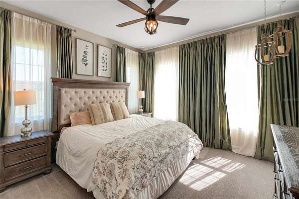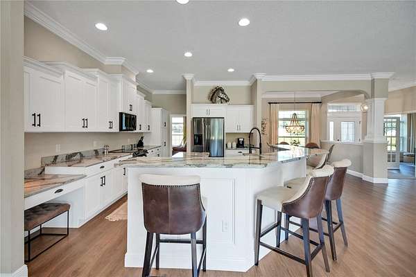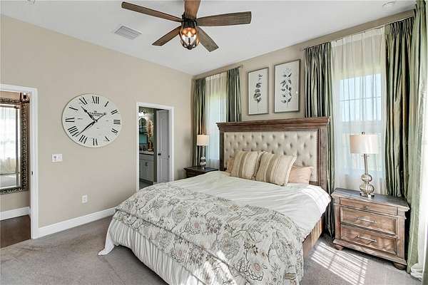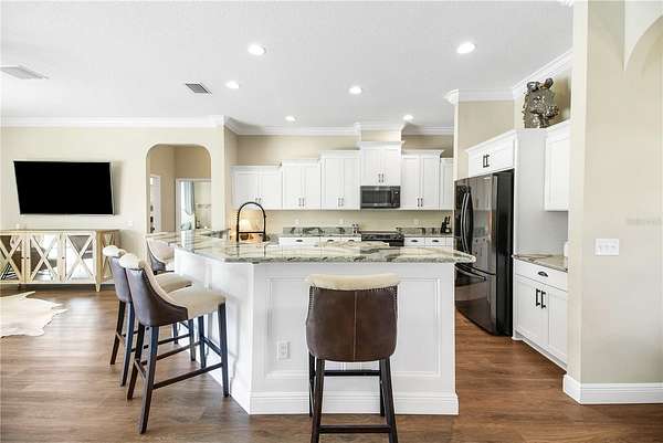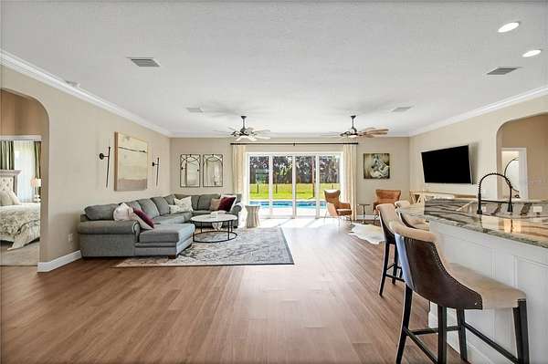 - Ceiling Fans(s), Crown Molding, Kitchen/Family Room Combo, Open Floorplan, Split Bedroom, Stone Counters, Walk-In Closet(s)