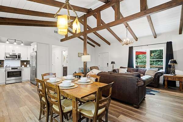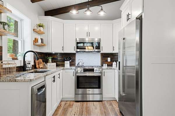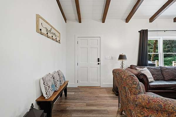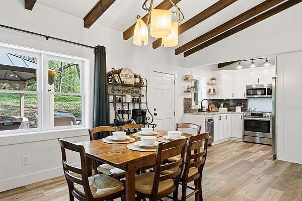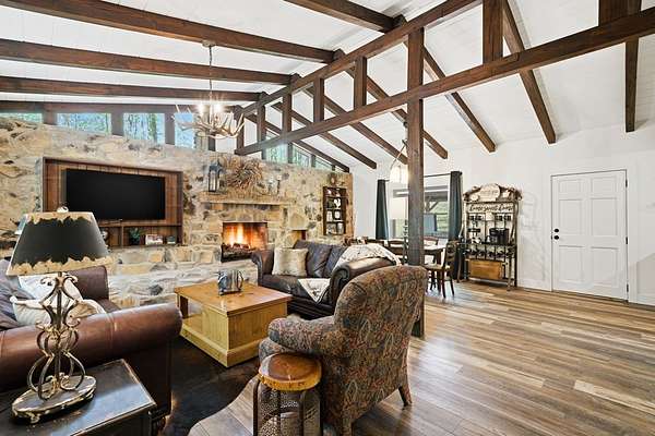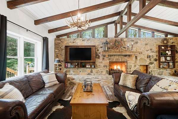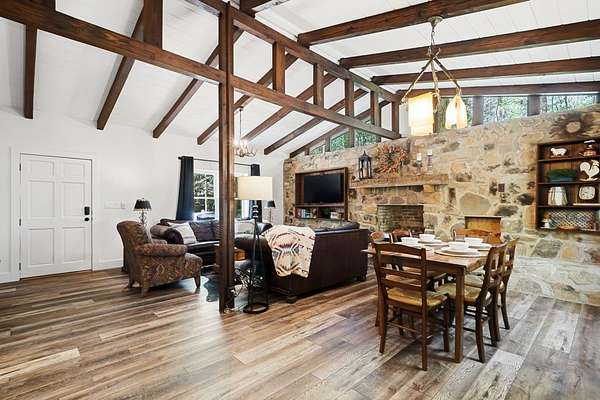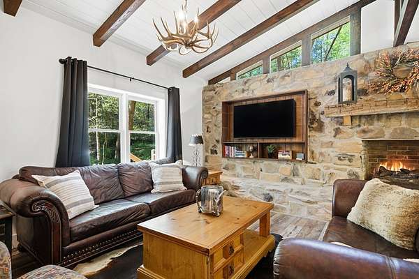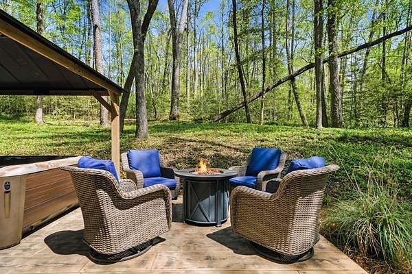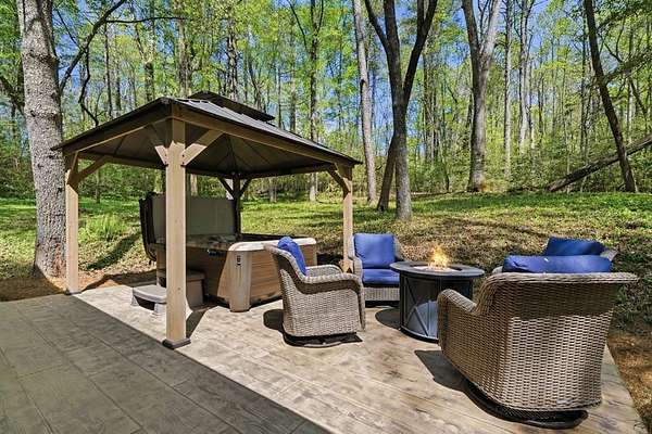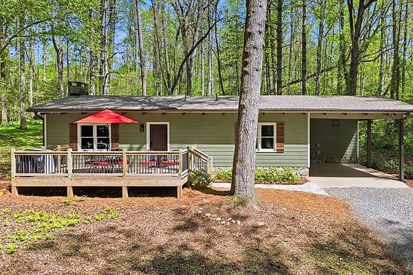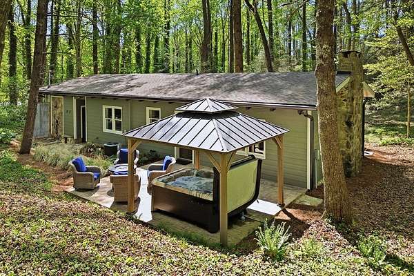 OH MY STARS!!! Welcome to the North Georgia Mountains where storybook charm meets modern luxury! Introducing the enchanting "Ivy Cottage"—a fully remodeled mountain retreat that feels like it was plucked straight from a dream. Tucked away in a lush ivy forest, this one-of-a-kind gem offers the perfect blend of cozy character and upscale updates. Step inside to an absolutely stunning great room featuring a full-wall stone fireplace that steals the show, creating the ultimate warm and inviting gathering space. The beautifully updated kitchen shines with modern touches, making it as functional as it is charming. With 2 bedrooms and 1 full bath, this cottage is the perfect escape for weekend getaways, short term rental or full-time mountain living. Outside, the magic continues unwind in the bubbling hot tub under the stars, rinse off in the outdoor shower, or entertain with ease on the inviting front deck. A circular driveway welcomes you home, while the one-car carport with EV charger adds a thoughtful, modern convenience. Perfectly nestled at the foot of Fort Mountain, you're just minutes from hiking, scenic views, vineyards, and all the charm of downtown Ellijay—restaurants, shopping, and small-town magic included. Bonus Opportunity: Additional 5.35 acres is available with this listing, offering even more room to expand your mountain retreat, create additional privacy, or invest in future possibilities. This is not just a home it's a rare diamond jewel in the mountains—truly unforgettable and impossible to replicate.