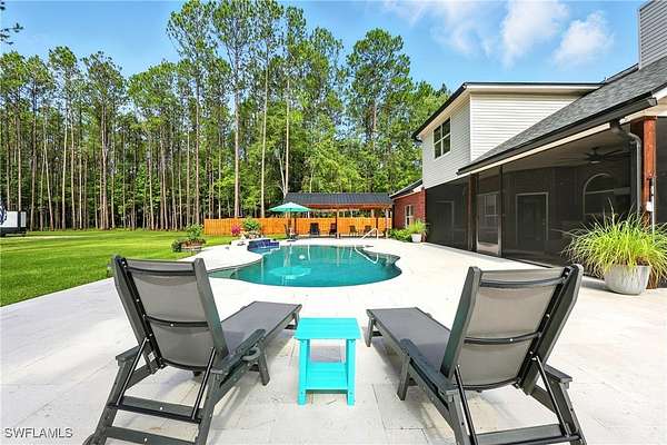 Wow! *PRICED BELOW APPRAISED VALUE!!! Here's your opportunity to be the proud owner of this exceptional, meticulous, recently renovated, all-brick 4BR / 3BA / 4 Car garage estate Pool home w/ 12' x 50' RV pad situated on an expansive, well manicured, 4.87 acre wooded lot in highly sought after Confederate Crossing! Step into your dream home and immerse yourself into the essence of luxury in this stunning, traditional, two story / split-floor plan property boasting 2746 sq ft under air including two primary BR suites up & down! *The 2nd floor custom 377 sq ft private primary BR suite is perfect for extended family member's, long term guests or convert to a private business office / media / recreational / fitness room. Retreat to the expansive, inviting, serene, outdoor patio w/ adjoined covered enclosed lanai plus large custom Cabana area perfect for large family gatherings, weddings, entertaining guests, al fresco dining, grilling out, enjoying cocktails or just hanging out with your pets! Relax in the refreshing, pristine, in-ground spacious pool w/ water feature, brand new pool heater / chiller & outdoor shower while taking in the "Southern Exposure" of this fabulous property's premier beauty!*Additional Property features that add to the home's allure include: Chef's inspired kitchen with real wood "soft close" cabinets, breakfast high-bar, new granite countertops, marble backsplash, new LG Energy Star stainless steel appliances w/ Sub Zero fridge, High-end designer marble tile thru-out, engineered wood floors & reverse osmosis system ~ 1st floor Primary bedroom includes a pool-view "walk-out" entry, spacious designer en-suite bath w/ large walk-in shower & soaker tub, dual sinks, sitting area & custom California closets ~ Three spacious guest bedrooms ~ Formal dining room / Family room w/ cozy Fireplace ~ Professional Interior paint ~ Custom tray ceilings & crown molding w/ high end lighting & ceiling fans ~ Private laundry room w/ side by side washer & dryer & tub ~ Meticulously landscaped grounds w/ new custom paved driveway & lighted walkways ~ New 200 Amp electric panel & 50 amp RV / Electric vehicle plug-in w/ water hook-up ~ New Hot Water heater ~ 2019 Roof ~ Epoxy garage floors & work area ~ ADT alarm system ~ Privacy fencing & much, much more! *With it's prime location in a NO FLY ZONE, enjoy peaceful living & easy access to Jacksonville's top-rated shopping, restaurants, taverns, nite-life, airport, service businesses and golf courses. So here's your opportunity to to make your dream home a reality in one of Florida's most desirable locations! Schedule your private viewing today! *NO FLOOD INSURANCE REQUIRED! *Furnishings Negotiable***
