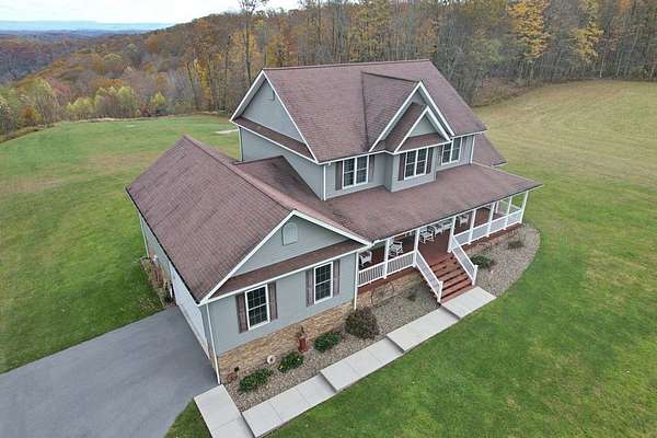 A price on priceless! Unmatched quality, unparalleled views and a address that's second to none. You must experience this striking 3027 sqft masterpiece with underground power, Spray foam insulation, 2x6 exterior walls, Travertine tile (natural stone), Mahogany floors, 9 ft ceilings on the main & 8 ft on the upper. You'll love the custom Amish built kitchen offering granite counters and endless space. Designed with entertaining in mind, this open floor plan will bring all the family together. Add in the spring fed pond, 2 car garage, extensive deck, 18 x 36 outbuilding w/electric & heat, it's all here sitting on 12 acres of views. Everything about this residence is impressive!