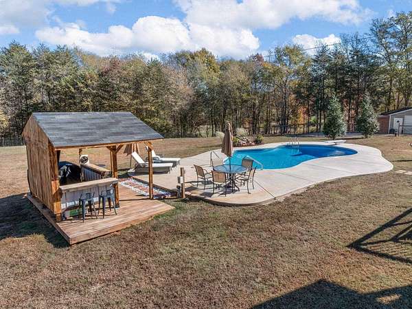 1076 McSwain Road, Chesnee, SC Completed in 2023, this 3-bedroom, 2-bath smart home sits on 7.21 acres with frontage along Buck Creek and blends modern efficiency with the freedom that comes with acreage and no HOA. Nearly every feature is automated, including lighting, thermostat, alarm system, and cameras, all managed through an app or Alexa for everyday ease. The kitchen features double ovens and opens into bright, connected living spaces with a thoughtful floor plan that includes foresight for the addition of an attached garage. The primary suite offers a spacious bath with a garden tub, and the home's layout supports comfort, function, and flow. A saltwater pool and covered pool house create a true outdoor retreat, perfect for entertaining or relaxing with family and friends. Beyond the pool area, open acreage offers endless potential, complete with a fenced paddock, barn, chicken coop, and utility building for storage or workshop use. Additional features include septic and electric hookups for an RV, an extended driveway with a dedicated pad, and plenty of space for animals, gardening, or future expansion. Set back on over seven acres in District 2 schools, the property offers privacy, open space, and the freedom to make it your own.