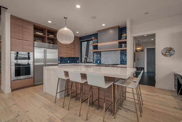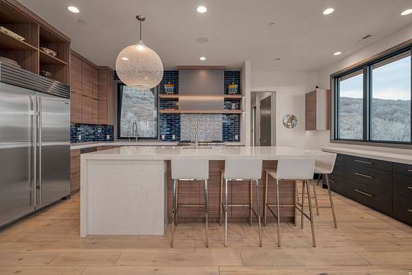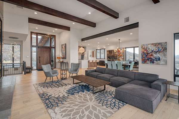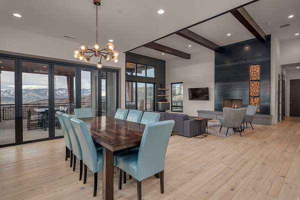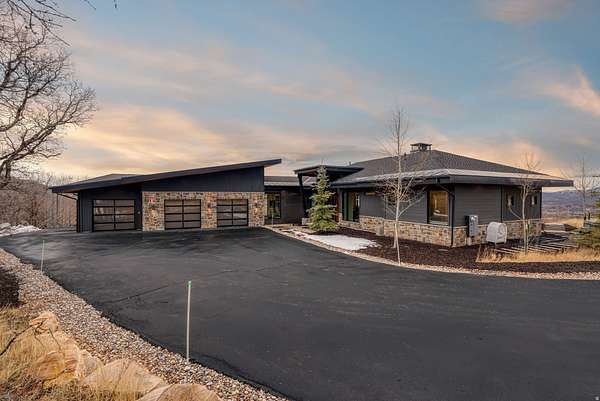 Top of the World Views! in this Stunning Mountain Modern Retreat in The Preserve. Welcome to your private oasis in Park City's exclusive gated community, The Preserve. This 5,000 sq. ft. home completed in 2019, is set on over 14 acres with breathtaking views of the mountains, ski resorts, and the entire valley. Upon entering, you're greeted by a light filled spacious living and dining area that seamlessly blends elegance and comfort, featuring radiant heated European white oak flooring, a custom gas fireplace, and exquisite lighting. Expansive LaCantina bifold doors open to a large covered outdoor deck, ideal for entertaining, al fresco dining, or soaking in the hot tub while watching the spectacular sunrises and sunsets. The generous chef's kitchen is equipped with Wolf and Asko appliances, an impressive custom wine cabinet and butlers pantry for added convenience. The main level master offers a spa like bathroom complete with soaking tub, steam shower and spacious closet with laundry. A main floor office adds to the functionality of this home. On the lower level discover a large living room with wet bar, 3 additional bedrooms, 2 bathrooms, a home theatre/gym and ample storage. The property includes a heated 3 car oversized garage with work bench, hose bibs and storage and the ability to add a 2500 sq. ft. guest home if desired. This beautiful home is ultra private yet remarkably accessible, just 10 min. from shopping and dining and 35 min from SLC International airport. Experience the perfect blend of luxury and nature in this exquisite Park City residence-your mountain modern retreat awaits!
