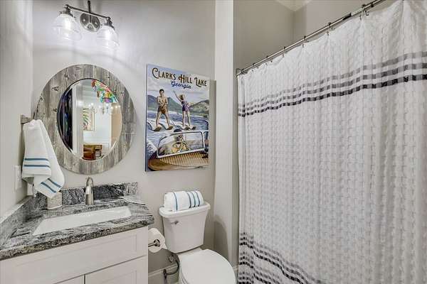 Welcome to your lakefront sanctuary in Providence Ferry - a residence where every detail whispers luxury, serenity, and prestige. Nestled on 1.64 acres along Strom Thurmond / Clarks Hill Lake, this 4,490 sq ft custom home is a masterclass in craftsmanship and lakeside living. With 6 spacious bedrooms, 4 bathrooms, and breathtaking views, it offers the perfect balance of grandeur and warmth. The Setting & Lifestyle Providence Ferry is a quiet and exclusive lakeside neighborhood where nature sets the tone. Towering trees, gently rolling land, and still waters create a setting of pure serenity. Deer appear at dawn, herons glide across the shoreline, and sunsets fill the sky with dazzling color. Life here flows with the rhythm of the lake: mornings invite fishing or paddling from the dock, afternoons bring boating and swimming, and evenings close with glowing skies mirrored on the water. For those who value beauty and privacy, this home is a rare opportunity. Exterior & Outdoor Living A stately brick and Hardie Board crowned by a durable composition roof. Landscaping blends manicured beds with natural greenery, while a rolling lawn stretches toward the shoreline. Outdoor living is elevated with a spacious covered porch - perfect for coffee at sunrise, grilling in the afternoon, or entertaining by twilight. A custom stone firepit with a generous seating area transforms evenings into unforgettable gatherings of stargazing, storytelling, s'mores, and lakeside relaxation. Interior Elegance Step inside to soaring ceilings, natural light, and wide-plank wood-look floors that capture the warmth and character of hardwood while offering modern resilience. The family room, anchored by a striking brick fireplace with gas logs, is both refined and welcoming. The kitchen is a chef's dream: a central granite island, premium stainless appliances, custom cabinetry, and an inviting breakfast area. Open yet defined, the layout makes entertaining effortless while maintaining a sense of intimacy. Private Retreats The main-level primary suite is a sanctuary of its own, complete with expansive walk-in closets and a spa-inspired bath featuring a soaking tub, double shower, double vanities, and timeless finishes. Five additional bedrooms provide comfort and flexibility for family and guests. Upstairs, a media/rec room offers space for theater, hobbies, or play, with an optional office, storage room or library for remote work or study. Modern Comforts Built in 2019, the home incorporates thoughtful infrastructure: dual HVAC, heat pumps, and wired for a generator. Smart features ensure convenience and efficiency, blending modern comfort with timeless design. Lake Access & Community The lake is not just a backdrop - it's part of daily life. With shared dock rights, weekends invite boating, fishing, and floating beneath wide open skies. Evenings by the dock or firepit are filled with peace, with water and wildlife as your constant companions. Providence Ferry is an upscale lakeside community known for natural beauty, privacy, and friendly neighbors. HOA fees remain modest while maintaining the community's appeal. Schools, shopping, and local dining are close by, while the neighborhood retains its tucked-away atmosphere. Why It's Exceptional The setting transforms with each hour: golden mornings on the porch, tranquil afternoons on the water, and star-lit evenings by the fire. This is more than move-in ready; it is move-in inspired. Schedule your private showing and experience life at 1076 Providence Ferry Road. Feel the breeze, walk the grounds, and imagine the story you will write in this extraordinary lakefront home.