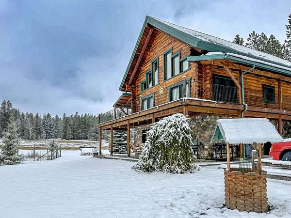 Spend the holidays in your own WINTER WONDERLAND! Perfect blend of rustic character w/ modern updates & WILDLIFE GALORE in this stunning 22+ acre Rocky Mtn Log Home near Starvation Lake. 2bed/3bath home offers a finished walk-out basement w/ bonus room, can use as 3rd bed/home office. Lower level could be converted to in-law suite/apt for multi-gen living or rental. Kitchen boasts newer appliances, while large windows capture breathtaking views of 49 North & Kalispell Mtn, VIEWS for miles! 2nd res has 3 beds/2baths w/ new roof & fresh paint & excellent versatility for family, guests or income. Property includes 40x60 shop w/ power, detached 2car garage, RV storage, 2 wells (25GPM+dug), 2 septics, seasonal ponds, sub-irrigated fields, garden, fruit trees & space for recreation, livestock.