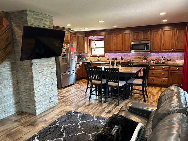 The home is paired with a heated 32'x48' pole barn with concrete flooring--perfect for storing outdoor gear, vehicles, or transforming into a workshop or recreation space.