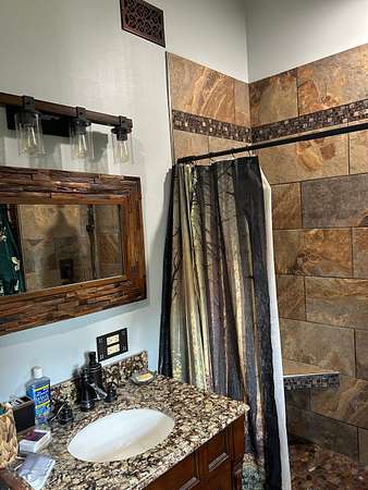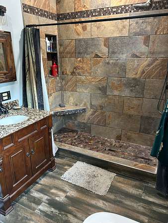 Heated ceramic tile floors in two bathrooms