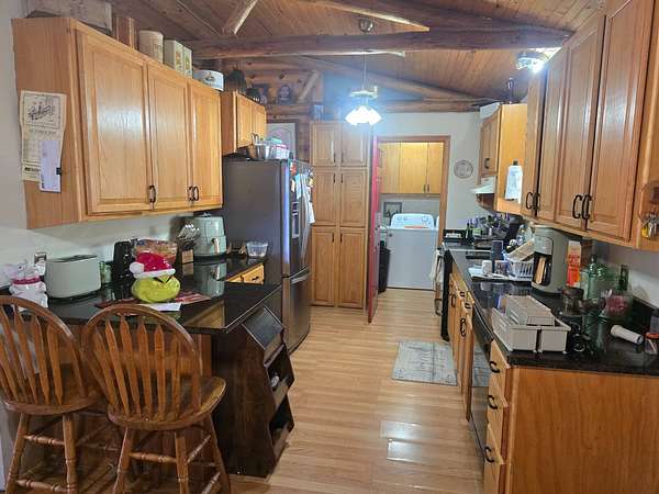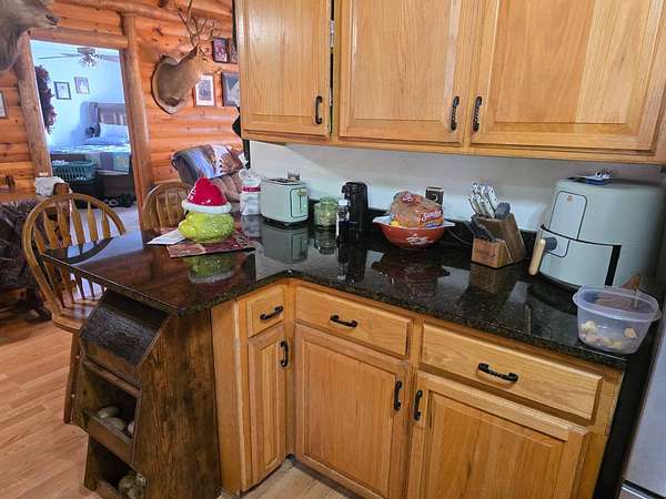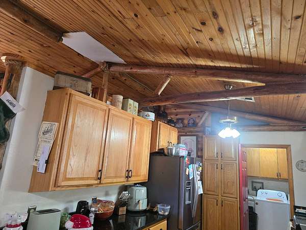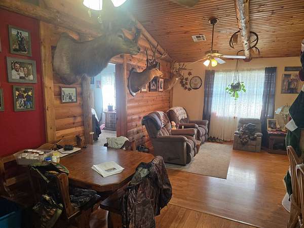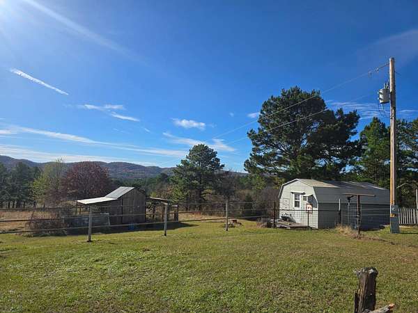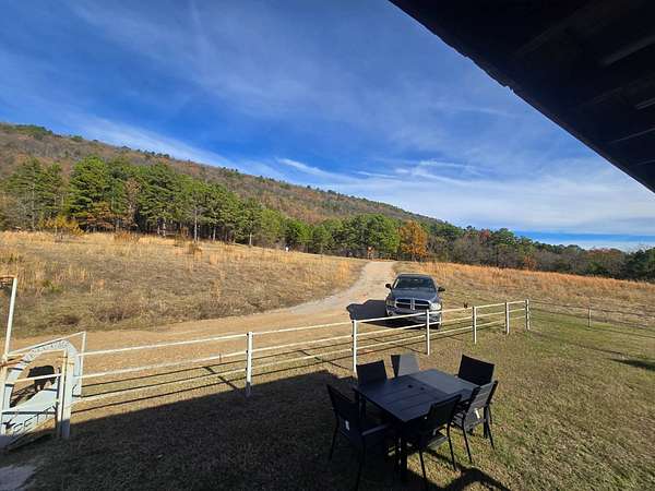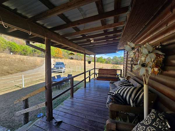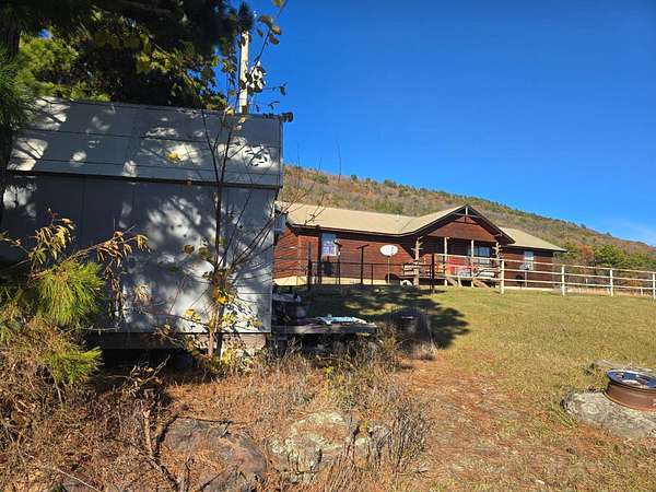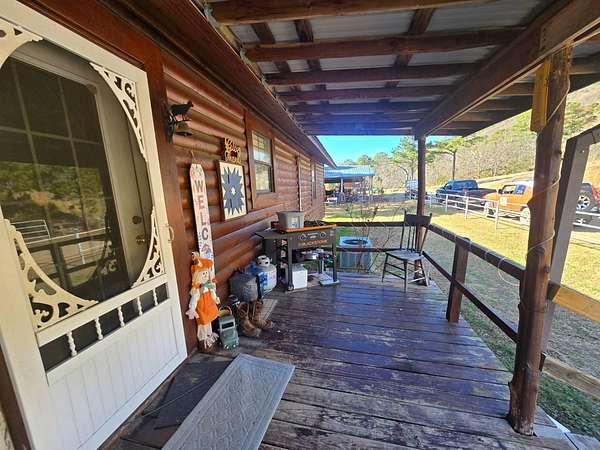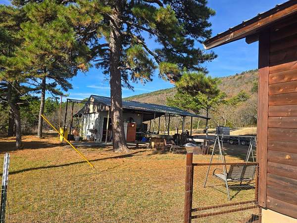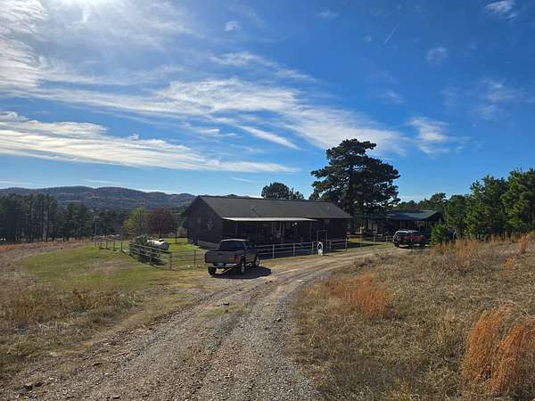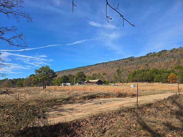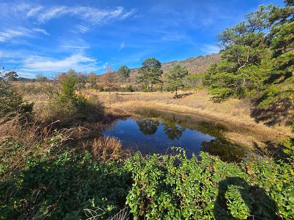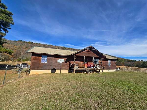 This absolutely charming estate has a most diversified topography that will delight the spirit and soul of those looking for that perfect home! The Retreat is what we call it. This 80 Acre estate is nestled on the foot of the historical Buffalo Mountain, an enchanting mountain with written history in the Spanish archives. Stories of gold mines that can still be seen today on the west end that Spanish Conquistadors in the sixteen century mined. Buffalo Mountain rises to 2060' north of the rustically decorated log sided home. To the south are views of the famous Potato Hills that are geological wonders of the world. The Retreat is in the Falfa Community, just off Hwy 1/63 on a nice county road 5 miles west of Talihina, OK and 6.5 miles east of Buffalo Valley, OK. It is suitable for a hunting preserve and or a livestock ranch. The current owner ran 15 head of cows and a bull very successfully and could have run more. The 80 Acres sweep up the mountain one half of a mile from the Bermuda grass valley pastures at 860' to the north property line at 1520'. The top half is covered in a beautiful natural forest with stepped benches, rock outcroppings that form natural shelters, boulder fields and mountain springs. This is where the monster bucks live, turkey, black bear, squirrel and other furry critters reside. A regular hunting preserve. The bottom half is where the homestead is with the pasture. The home is a nicely appointed, well insulated 1517 sf log sided home with 3 bedrooms, office, 2.5 baths. Living area features a vaulted ceiling with pine beam rafters, tongue groove ceiling/walls with a log accent wall. Kitchen has black granite countertops, ash cabinets and stainless appliances that stay. A very attractive kitchen. Appurtenances and amenities are many, including; Legal access via a paved county road, 14x20 well insulated she-shed, two car carport garage that includes a 10x12 man cave w/toilet, game processing room w/4x4 walk-in game cooler, 25x50 hay barn, livestock working corrals, 26x40 dog kennel, shop building, 12x12 log hunter's cabin with 4x12 front porch, storm shelter and a nice little orchard that was established a few years ago. The water is provided by a water well that flows 17.5 plus gallons per minute. There are also two water meter boxes that are not in use. Also, two ponds for stock and game. There comes a time in everyone's life when it is time to pass the torch over to the next runner, that time has come. PLEASE CALL LISTING BROKER DIRECTLY FOR YOUR PERSONAL TOUR, you'll be happy you did!