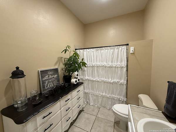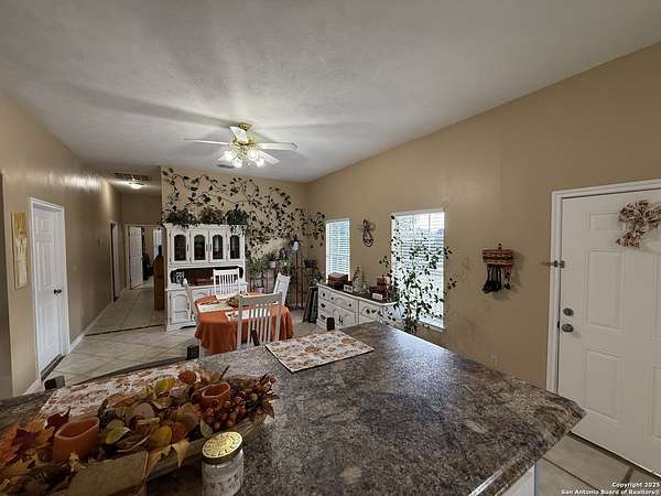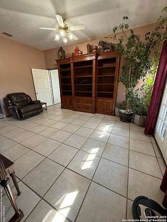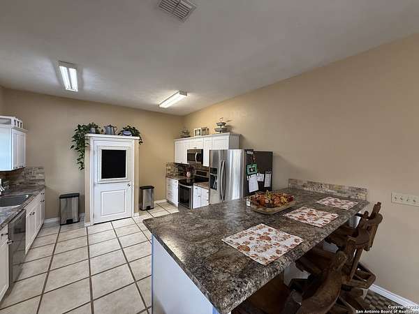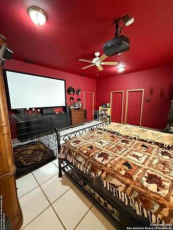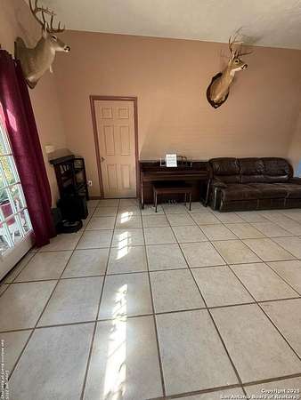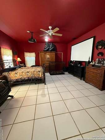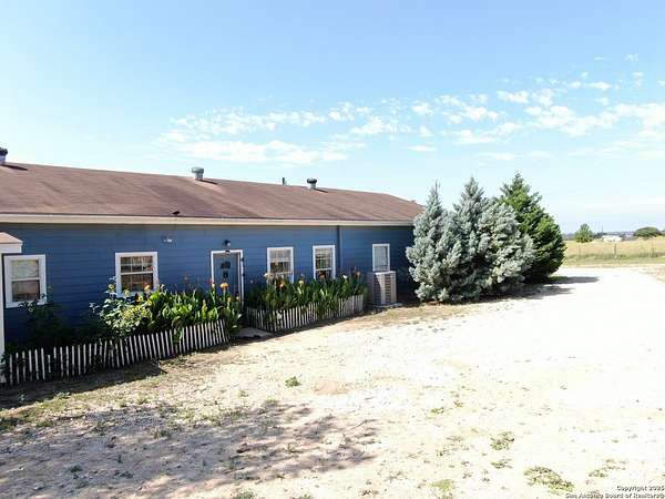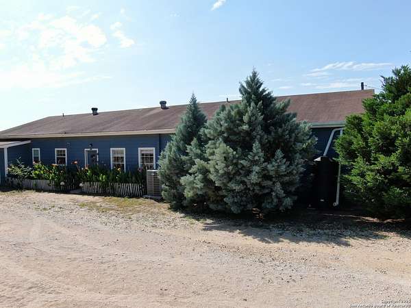 Come see this Sutherland Springs ranch-style home built on a concrete foundation. It's nestled in the backend of 5.85 acres of unrestricted country living with a cattle AG exemption. This 5 bedroom, 3 full bath house with multiple entryways and high ceilings is fenced and cross fenced and is waiting for your family. There is ceramic tile throughout the house with spacious rooms and a split floor plan that has 3 bedrooms on one side and 2 on the opposite with their own private entry/exit. Open Kitchen / Dining Room has updated counters, cabinets, and appliances which includes a large breakfast bar. Master bedroom features a movie theater with high-definition projector to a 120" screen complete with high end surround sound (Negotiable). The home is comforted with an AC system that was installed new in 2021 with the remainder of a 10 year transferable warranty, has High Speed GVEC fiber internet service and has handicap access (36" doors and low entry tubs in 2 bathrooms). Outside there are lots of mature oak trees, spruce, and blue spruce trees. The front of the house features an above ground pool with sand pit for family fun and the back yard features a large double lofted Amish-built storage building and a chicken coop. Come see it today because this can be your peaceful, quiet, Texas country home.