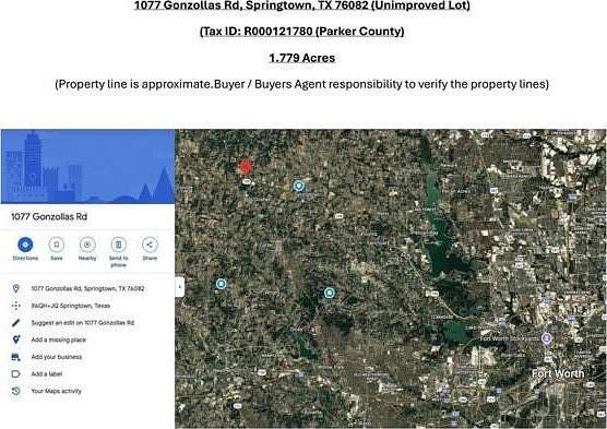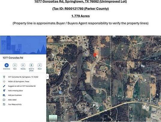 Discover the perfect opportunity to build your dream home on this stunning 1.779-acre lot in the heart of Springtown, TX! Nestled within a peaceful community with an established HOA, this unimproved land offers a blank canvas to design a custom retreat surrounded by the natural beauty of Parker County. Enjoy the privacy and serenity of country living while still having convenient access to local shops, dining, and top-rated schools. With plenty of space for a spacious home, outdoor living areas, and more, this expansive lot is ideal for those seeking a blend of tranquility and modern amenities. The HOA ensures the neighborhood maintains its charm and value, making it a smart investment for the future. Don't miss the chance to claim your slice of Texas paradise!