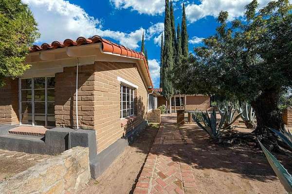 History abounds this 1948 TRUE ADOBE home on 1.95 fully fenced, gated, PVT well and city water and usable acres ideal for your animals/horses, garden enthusiast, future workshop/barn or ??? The views are amazing of the mountains and pastoral valley, ample parking for your vehilces and desert toys, detached storage bldg and carport for 4 vehicles. Courtyard leads to enclosed porch that opens to spacious living room with open beamed ceilings, center fireplace with wood burning stove insert and Saltillo tiled floors. On one wing of home is the master suite with new carpet, attractive bath with original tiled counters, separate tub from shower and opens to second bedroom. The opposite wing is enhanced by newer carpet and 2 additional bedrooms that share a remodeled bath with tiled shower. You will appreciate the kitchen featuring new quartz countertops, new appliances, new cabinet hardware and flooring. The huge family/game room has an inviting corner brick fireplace with hearth and slider to rear patio. An added value is the attached 1BR/1BA with kitchette and living area for your extended family. A must too see and AFFORDABLE! Note: buyer to satisfy self as to square footage and contents of listing.