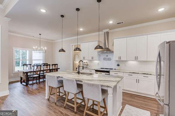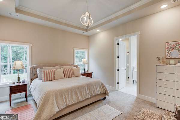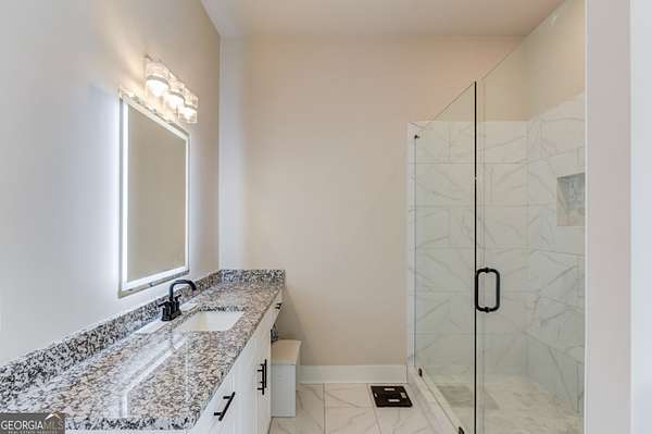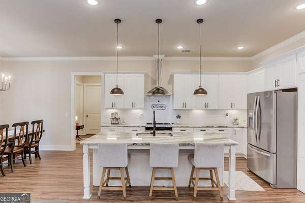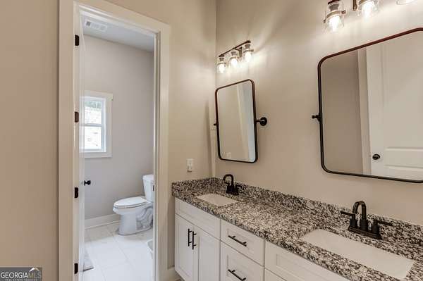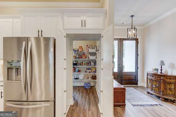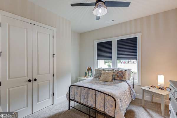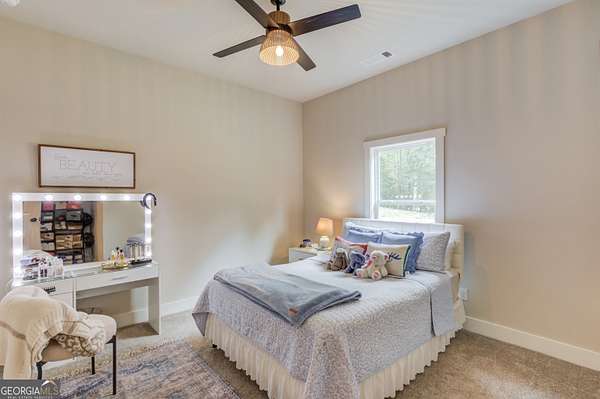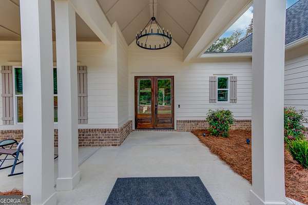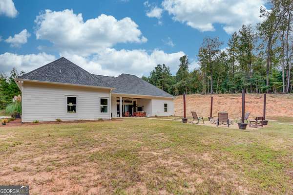Practically New Farmhouse on 2 Acres! Welcome to this stunning modern farmhouse, built in 2023 and set on a peaceful 2-acre cul-de-sac lot. Surrounded by woods with a large, flat yard, this home offers privacy, space, and upgraded elegance throughout. Step inside to discover an open-concept layout with soaring 10-foot ceilings throughout and 8-foot doors, oversized windows, and custom finishes at every turn. The heart of the home is the beautiful kitchen-complete with upgraded granite countertops, under-cabinet lighting, and a hidden walk-in pantry-all flowing seamlessly into the living area, perfect for entertaining. The primary suite is truly luxurious, featuring an oversized bedroom, walk-in closet, and a convenient laundry room accessed directly through a pocket door from the master closet. All three secondary bedrooms are generously sized, each with large closets. Extra square footage was added to the back of the home to provide even more living space and expanded bedroom layouts. Enjoy outdoor living with both a covered front porch and covered back porch overlooking the peaceful backyard. Thoughtfully designed upgrades include: Custom slider door with added glass panels for abundant natural light, Extended driveway for additional parking, Oversized 2-car garage with 8-foot garage door, Irrigation system in front yard, All fixtures and mirrors upgraded, Bonus room upstairs-wired and plumbed, ready to finish for more space. To top it off, this home is located in an area that offers optional enrollment in Social Circle City Schools, giving you flexibility in education choices. A rare opportunity to own a nearly new, thoughtfully upgraded farmhouse in a serene setting-don't miss it!