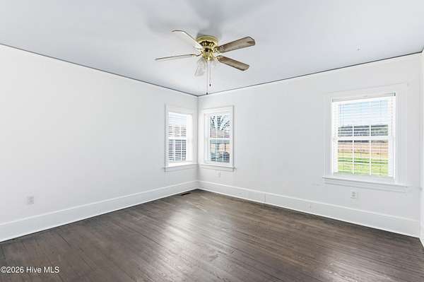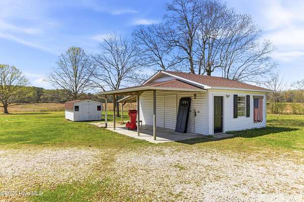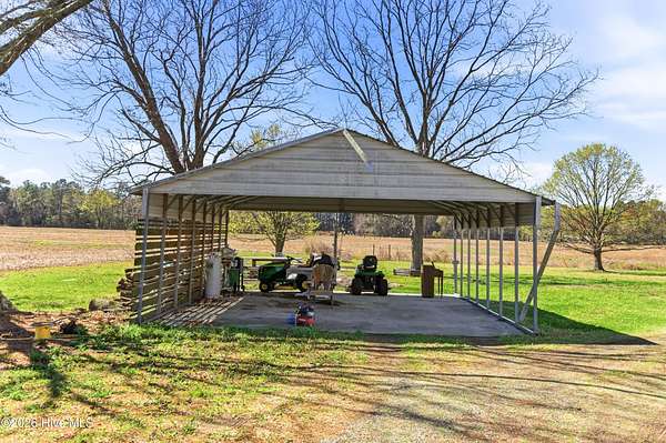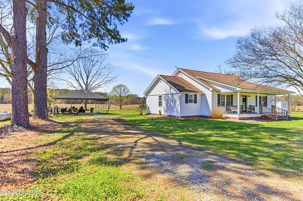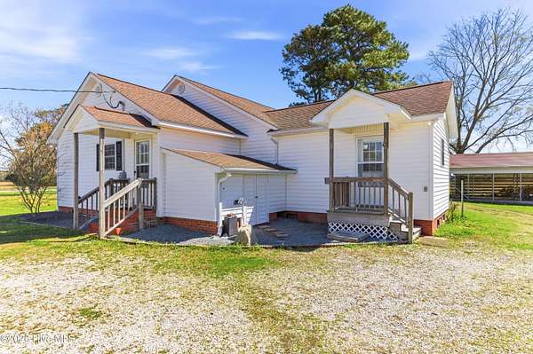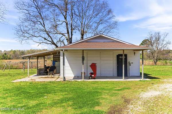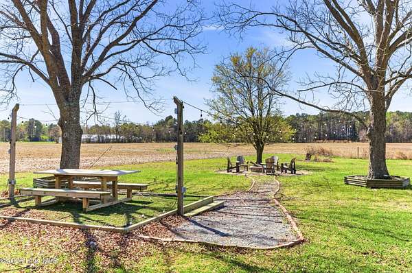 Charming Willard, NC farmhouse on 2.65 acres -- 3 bedrooms, 2 full baths. Classic single-family home with warm hardwood floors throughout the main living areas, generous natural light, and a cozy layout that blends country comfort with functional living. Primary bedroom with a full bath; two additional bedrooms share a second full bath. Spacious kitchen , large dining area and easy flow to the living area. Detached carport provides covered parking and extra storage; a separate workshop offers space for tools, projects, or hobbies. Property planted with established grapevines and large trees, creating a pleasant, productive landscape feature. Outdoor living is highlighted by a dedicated firepit area -- ideal for evenings with family and friends, roasting marshmallows, or relaxing under the stars. Ample yard and open acreage offer gardening potential, future pool or room to expand. Perfect for buyers seeking a peaceful rural setting with practical outbuildings and classic farmhouse character.