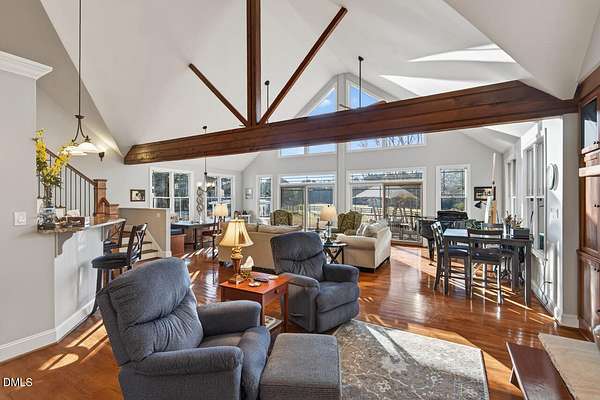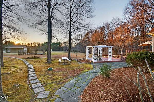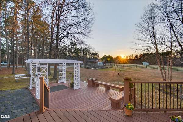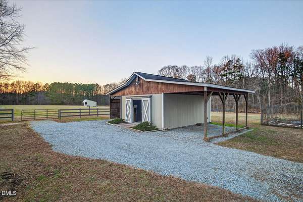 Your private stage for the sunset, this 13 acres of field in Bahama with a spacious, gorgeous custom home and a newly built tennis court will be your serenity every day and night - ready for your horses, animals or gardens. This 4 bed, 3.5 bath home with 3,943 sq ft is perfect for entertaining, holidays, and everyday life to feel like you mean it! Large living room with gas fireplace and featuring a soaring cathedral ceiling, is filled with daylight. Retreat-like primary bedroom on main level, with gigantic walk-in closet and dual sink bathroom with soaking tub and large tiled shower. Formal dining room off kitchen and casual dining space facing the sunset. The professional office and spacious media/bonus room upstairs for movie night make this a treasure, and THEN you step outside! Tennis anyone? No space could make you more excited to pick up a racquet! Or jump on a horse and literally ride into the sunset! Storage barn for your tractor and other toys. Some of the highlights include 2 new HVAC units, Central vacuum, tankless water heater, and outlet for possible car charger in garage, new crawlspace barrier and dehumidifier, and even a new well pump! 29 min to Duke Hospital, 13 min to brand new Publix, 7 min to Little River Regional Park, 22min to Downtown Hillsborough, and 22 min to RDU Airport. Everything is here for you!