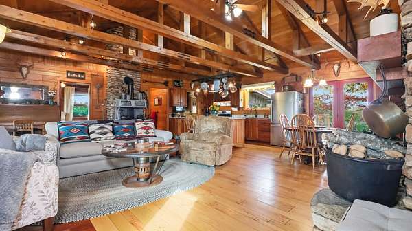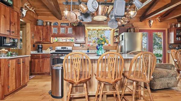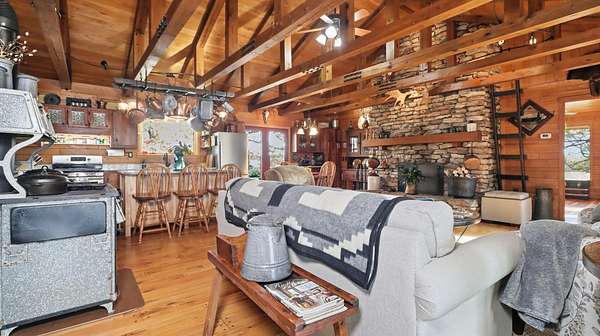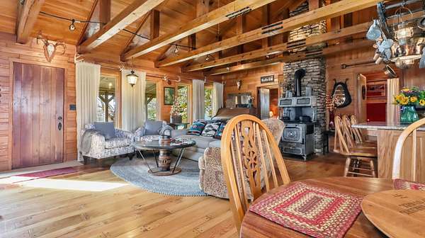 Discover Rustic Elegance on this remarkable 202-acre Ranch/Farm located in the Howell Valley School District, just minutes from West Plains. Privately set yet conveniently only four miles down paved PP Highway from Highway 63, this property offers the perfect blend of comfort, function and natural beauty.Approximately 85% of the land is open pasture, cross-fenced into 9 pastures with 8 ponds for rotational grazing. Pipe fencing surrounds the home and barn area, with pipe loading pens ready for livestock. Two wells supply water to the home and pastures, which have been maintained with fertilizer and lime applications to support healthy, productive grassland.Mature hardwoods, walnut, white oak, maple, pine, red oak, cedar, lilac, dogwood, and redbud, frame the property, along with perennial flowers and decorative plantings. Wildlife is abundant, offering premium deer and turkey hunting right from the home, with a perfect balance of woods and pasture that attracts game and birds alike.The timber-frame home showcases true craftsmanship, built with 13 varieties of native wood including walnut, cherry, ash and more. Inside, you'll find solid wood floors throughout, vaulted ceilings, granite counters, and stunning custom hardwood doors in every room. The home features propane heat, a stone fireplace, and a wood-burning stove for cozy comfort year-round. Improvements include newer roofs on all buildings, HVAC and updated windows. Outside, a shop, barn, carport, sauna, and fire pit add function and enjoyment to this beautiful setting.Included with sale: Cub Cadet mower and side-by-side, tools and trailer in shop, appliances, select furnishings, BBQ and patio furniture, wagon wheels, bird baths, and more. Some furniture is negotiable.This is a rare opportunity to own a beautifully maintained Ozarks farm whether you'reseeking a productive ranch operation, a hunting retreat, or simply peaceful country living!