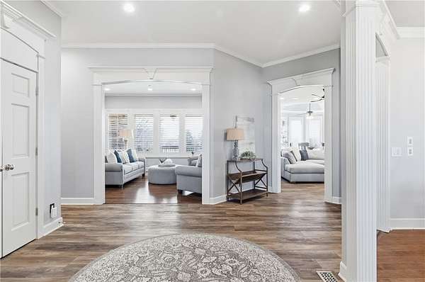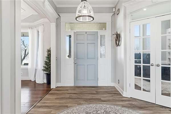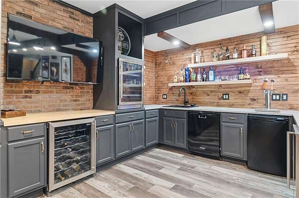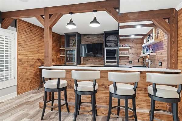 Absolutely STUNNING estate home on 2.56 acres with a reverse 1.5-story floorplan, offering 5 bedrooms & 4.5 baths in an impressive all-brick home with a concrete roof-built for timeless beauty and lasting quality. This home has been extensively updated throughout with fresh interior paint, new fixtures, and flooring. The beautifully updated kitchen is the heart of the home, featuring new countertops, painted cabinetry, updated appliances, and a stylish backsplash. You'll love the two oversized pantries, offering incredible storage and functionality. The main level also includes a private office with extensive built-in cabinetry, along with a formal living room & formal dining room-perfect for entertaining. The primary suite is a true retreat with an updated spa-like bathroom, including heated mirrors, towel rack & a gorgeous walk-in shower. Even better - the second main-level bedroom features its own private en suite bathroom, making it perfect for guests, in-laws, or a second primary-style suite. You'll also love the oversized laundry room, offering plenty of space for storage, folding, & everyday functionality. Downstairs, the finished lower level is an entertainer's dream with a fully updated bar featuring new countertops, cabinetry, fresh paint, & updated lighting, plus three beverage refrigerators & a wine refrigerator. A separate game room includes lots of space for a pool table, ping-pong table, shuffleboard table, and additional bar space-ideal for hosting family and friends. Step outside and enjoy your own private backyard oasis with new landscaping, a saltwater-converted pool, and an incredible outdoor living setup. The property also features an additional outbuilding for pool storage and lawn equipment, plus a new outdoor kitchen designed for summer entertaining. Relax by the fire pit or unwind in the peaceful sitting area under the deck, surrounded by unmatched privacy. This one truly has it all-space, luxury, updates, and outdoor living at its finest.