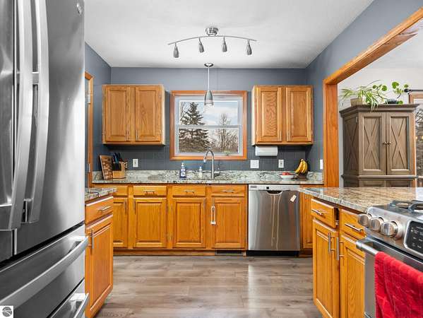 This well-maintained 5 bedroom, 3 full bath home offers space, comfort and a peaceful setting on 2.34 beautiful acres in Tustin, conveniently located less than 10 miles from Cadillac and just 1.3 miles from M-115. Set on a quiet, county-maintained road, the property provides privacy while remaining easily accessible. The main level features two bedrooms, one of which is currently being used as a home office, along with generous living spaces designed for everyday living and entertaining. Upstairs, you'll find the primary bedroom complete with a walk-in closet, an additional bedroom and a full bathroom. The basement adds even more flexibility with additional living space, another bedroom, a full bathroom, laundry area, ample storage and a separate room that could be used for canning. A 2-car attached garage connects to the home through a spacious breezeway/mudroom, offering plenty of room for shoes, coats and everyday gear. The attached garage also features stairs leading up to a large loft, providing excellent additional storage. In addition, there is a separate 24X40 pole building, perfect for a workshop, hobbies, vehicles or extra storage needs. Outdoor amenities truly shine with a back deck ideal for relaxing and watching wildlife. There is a hot tub for unwinding year-round and beautifully maintained grounds featuring fruit trees, berry bushes and a greenhouse. This property offers the perfect blend of peaceful country living with the convenience of nearby town amenities.
