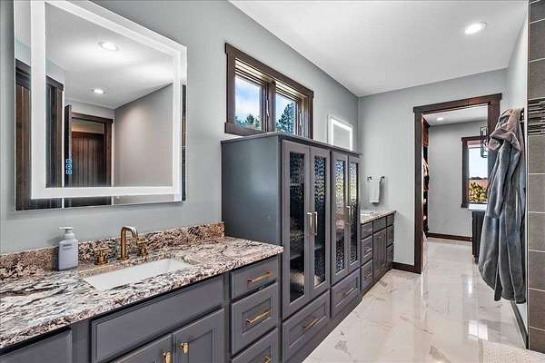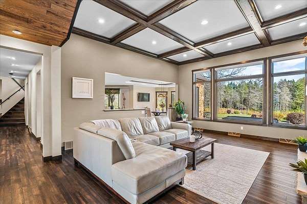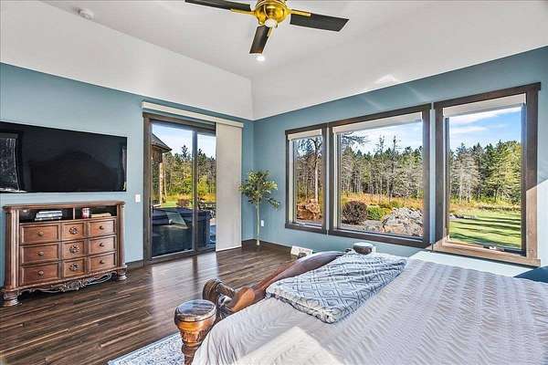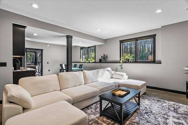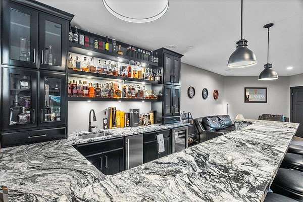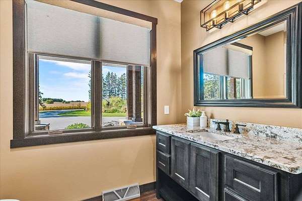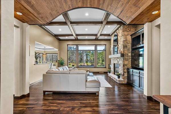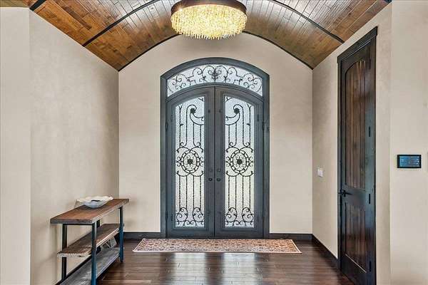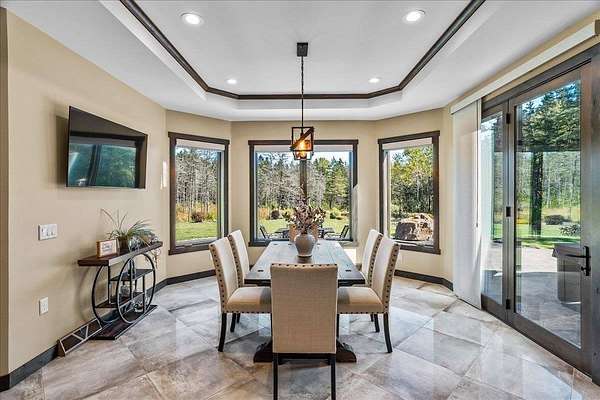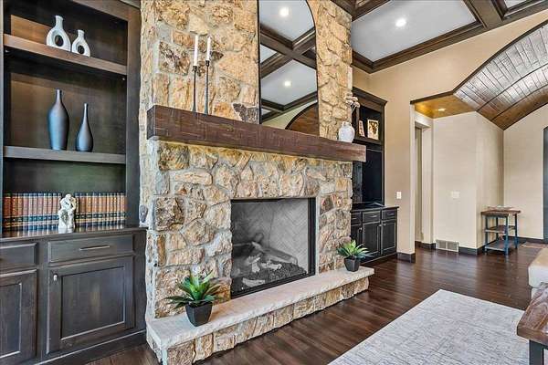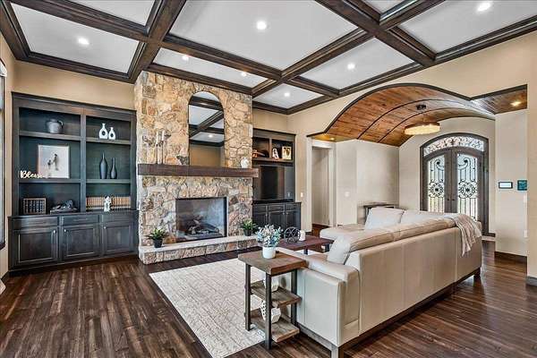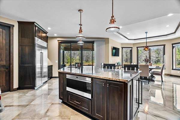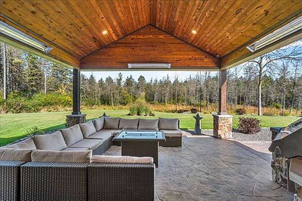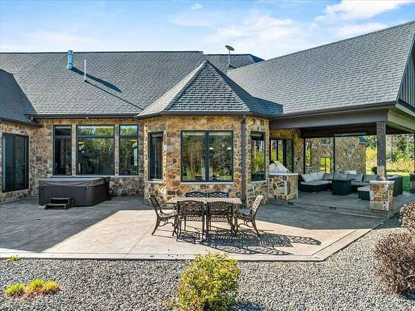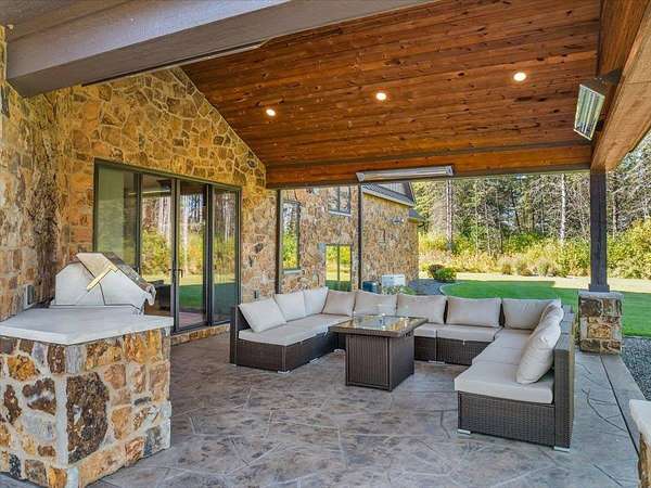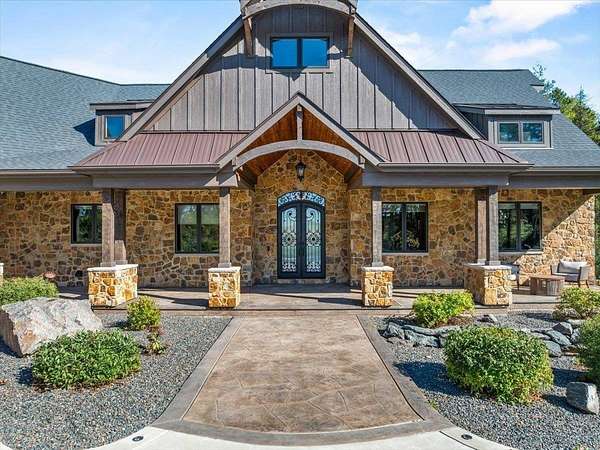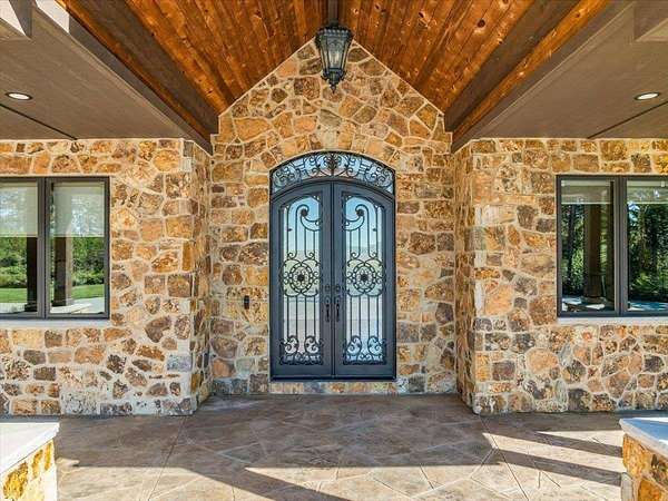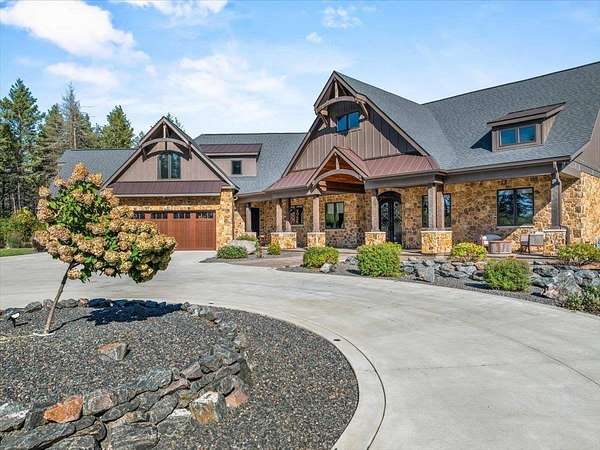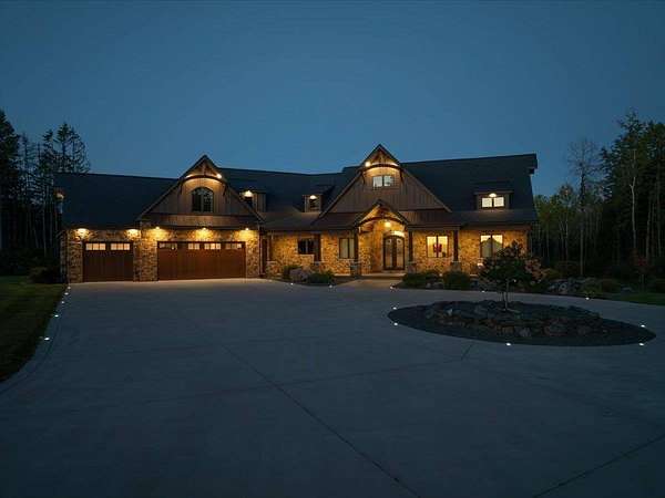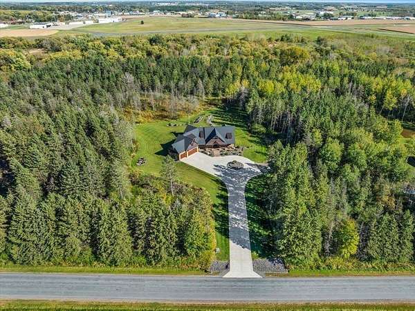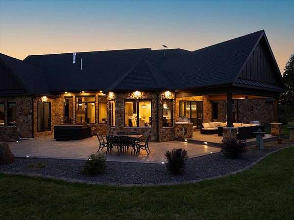 Luxury Living in a Private Woodland retreat - Every Detail Designed for Comfort and Elegance! Welcome to this breathtaking estate nestled on 7 partially wooded acres, where stone, wood, and modern craftsmanship blend seamlessly to create a home that is both warm and refined. From the moment you arrive, you're greeted by a grand concrete circle drive, accented with integrated lighting for stunning nighttime curd appeal. The home's exterior showcases natural stone and rich wood finishes, setting the tone for the luxury that awaits inside. A stamped concrete walkway and front porch, anchored by elegant pillars, lead you to an impressive double front door beneath a vaulted wood archway and ceiling, highlighted by a statement chandelier. Step inside to discover a living room that radiates sophistication, featuring expansive windows, a gas fireplace with custom built-ins, and a beamed ceiling that adds architectural interest. The open concept design flows effortlessly into the gourmet kitchen and dining areas, creating the perfect space for entertaining. The kitchen is a chef's dream, complete with granite countertops, walk in pantry, beverage fridge, and high-end appliances - all included. From here, step out to your covered stamped concrete patio featuring a built-in Hestan grill, infrared heaters, and plenty of space to relax or entertain year-round. The main level offers a thoughtfully designed layout with a home office featuring built-ins, first-floor laundry, and a gorgeous primary suite that feels like a private retreat, Enjoy a spa-inspired ensuite bath, walk-in closet, and direct walkout access to the hot tub, perfect for winding down under the stars. Upstairs, you'll find two spacious bedrooms, each with their own bathrooms, offering comfort and privacy for guests or family. The lower level is true entertainers dream with in-floor heat, a full bar, golf simulator, pool table area, sauna, living room, and a kitchenette - plus an additional bedroom and full bath, ideal for overnight guests. Car enthusiasts will appreciate the heated and insulated 3-car garage, providing both luxury and practicality. This exceptional property combines the peace of nature with the finest in modern living. Whether hosting guests or enjoying quiet moments by the fire, this one-of-a-kind home offers the lifestyle you've been dreaming of. For outdoor enthusiasts, an enclosed deer stand provides the perfect vantage point to observe wildlife or enjoy seasonal hunting in comfort and safety. Don't miss this rare opportunity to own a slice of paradise - where luxury meets the great outdoors. Your dream escape starts here.