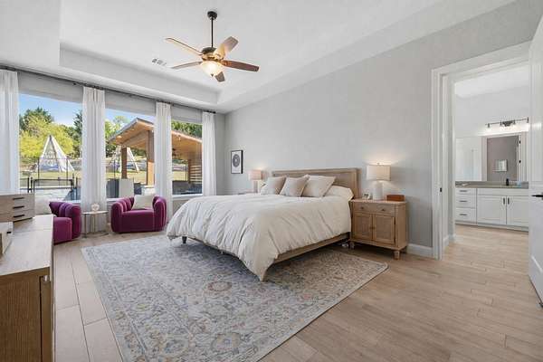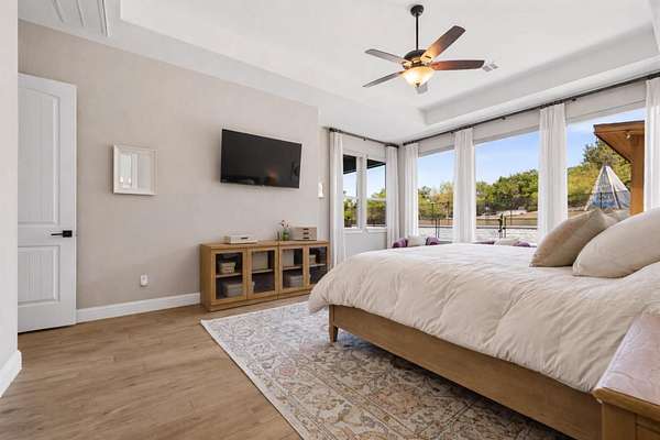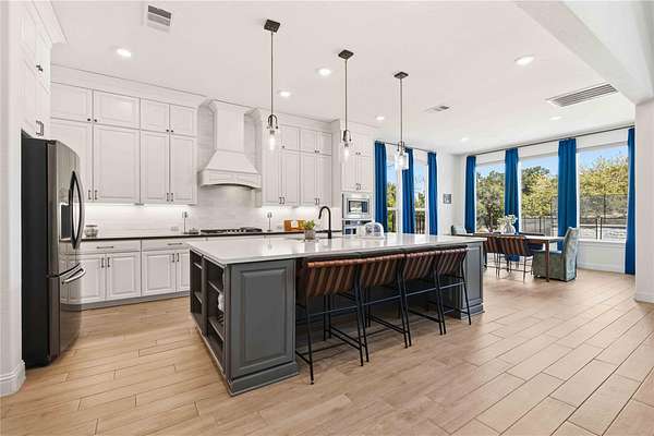 Refined Luxury Hill Country Living! Situated on 1.5 scenic acres in the gated Saratoga Hills community, 1078 Gato Del Sol Avenue offers the ideal blend of luxury, privacy, and Hill Country charm. Built in 2021 by Ashton Woods, this stunning residence spans approximately 4,433 square feet and features five bedrooms, six bathrooms, and multiple living & dining areas custom curated for everyday living and elevated entertaining. Designed to capture the natural beauty of the Texas Hill Country, the outdoor living experience is truly exceptional. The backyard feels like a private resort, complete with a stunning pool, expansive patio, covered cabana, firepit area, and a fully equipped outdoor kitchen. Removable safety fence offers added peace of mind without compromising the aesthetic, while a dedicated pool bath is easily accessed from the patio. The interior shines from the showstopper foyer to the sunlit open floor plan living with a wall of oversized windows framing your hill country acreage. Featuring designer lighting, statement accent walls, and durable wood tile flooring. Exquisite gourmet island kitchen with premium appliances, an oversized entertainer's island, and custom butler's pantry. A standout feature of the home is the full mother-in-law suite, complete with its own private entrance and dedicated living room - perfect for guests, multigenerational living, or added flexibility. Adding to the home's versatility, the third bay of the garage has been thoughtfully transformed into a climate-controlled home gym. Climate controlled with a bath that opens onto your backyard oasis, creating the ideal setup for both wellness and entertaining. Located just 30 minutes from downtown Austin and zoned to highly acclaimed Dripping Springs ISD, this Saratoga Hills residence offers the perfect balance of refined living and serene Hill Country lifestyle.