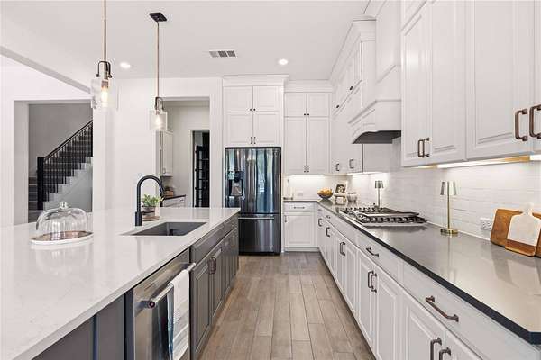 - Built-In Oven(s), Dishwasher, Disposal, Exhaust Fan, Gas Cooktop, Microwave, RNGHD, Stainless Steel Appliance(s), Water Heater, Wine Refrigerator