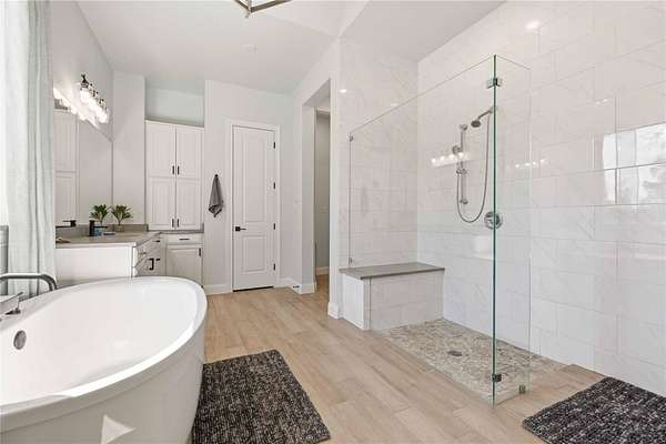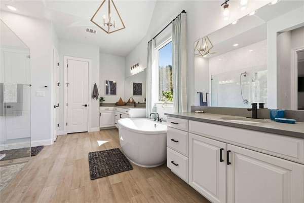 - Bookcases, Breakfast Bar, Built-In Features, Ceiling Fan(s), Ceiling-High, Ceiling-Vaulted, Chandelier, Double Vanity, Entrance Foyer, In-Law Floorplan, Interior Steps, Kitchen Island, Multiple Dining Areas, Multiple Living Areas, Open Floorplan, Pantry, Primary Bedroom On Main, Quartz Counters, Recessed Lighting, Tray Ceiling(s), Two Primary Closets, Walk-In Closet(s)