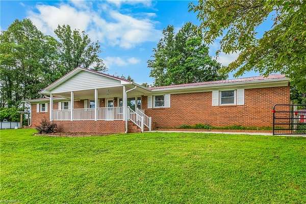 Discover space, comfort, and privacy in this beautiful 3-bedroom, 2.5-bath ranch-style home set on 4.26 acres in Westfield, NC. You'll love the open layout, perfect for modern living, and the oversized closets throughout provide abundant storage. This move-in ready home features a spacious kitchen, complete with a big island for extra seating -- ALL appliances convey. Outside, relax on the covered front porch with seasonal mountain views of Hanging Rock (front porch) and Sauratown Mountain (side porch), or take advantage of the fenced-in yard--perfect for pets, gardening, or play. A wired storage building adds extra space for tools, hobbies, or a workshop. Convenient to Pilot Mountain, King, and Mt. Airy -- this property gives you the best of both worlds: peace and privacy.