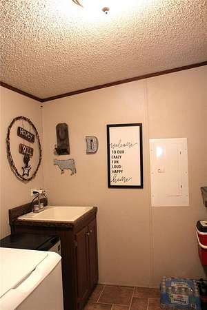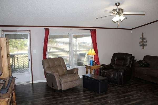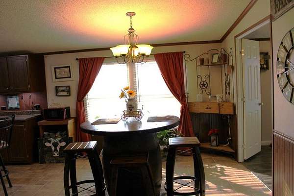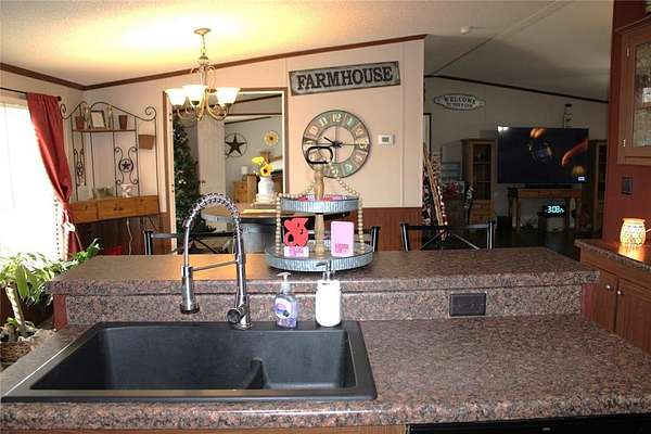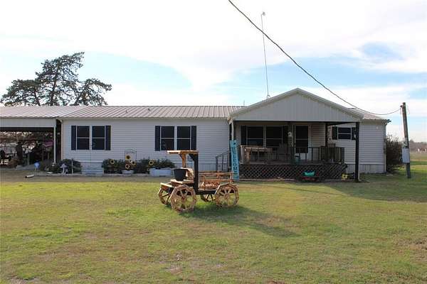 Immaculate 3-bedroom 2-bath 2-car carport manufactured on 1.5 acres out in the country and just moments from the lake. This thoughtfully designed home boasts a spacious living area, accentuated by a charming wood-burning fireplace, creating an inviting atmosphere for cozy gatherings. Full-size dining area opened to the kitchen with an island, tons of storage, and counter space. The expansive primary suite offers a tranquil escape. It comes complete with a large en-suite bathroom built for relaxation with the large garden tub and separate shower stall. An additional office space provides the perfect setting for remote work or creative pursuits, and a split bedroom layout ensures privacy for all. Large laundry room featuring a sink, making chores a breeze. Outside, the property includes a covered front and side deck, patio, and a metal roof, Connex, and a storage shed. Whether you're seeking a peaceful retreat or a family home, this property offers the perfect blend of comfort and functionality with easy access to Terrell for I-20 or Hwy 80.