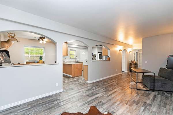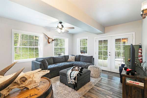 Welcome to 10780 Grant Creek Road-an exceptional property that seamlessly blends comfort and versatility in one of Missoula's most picturesque settings. This distinctive 4-bedroom, 2-bathroom residence showcases insulated concrete form (ICF) construction. Spanning three thoughtfully designed levels, the home offers flexible living arrangements. The lower level is equipped with its own entrance bedroom, full bathroom with soaking tub, kitchen, living room and bonus room, making it ideal for additional living quarters-perfect for multigenerational families, guests, or potential rental income. The main level includes three additional bedrooms, two living areas, a full bathroom, kitchen, dining area. This level also has access to the covered balcony, which provides a peaceful retreat to unwind and take in the natural beauty that surrounds you. The recently finished upper level features a large family room area. Nestled on a serene parcel with direct frontage on Grant Creek, the property invites you to embrace the outdoors. Step outside to find a private trail leading down to the creek bank, where the soothing sounds of flowing water create a tranquil ambiance. A large garden area enhances the outdoor living experience, featuring established raspberry bushes, chokecherry, elderberry, rhubarb, and a pear tree. Two conveniently located spigots make irrigation simple and efficient, supporting both the garden and additional landscaping. Located adjacent to extensive hiking trails and just minutes from downtown Missoula, this home offers the perfect balance with access to the outdoors and urban convenience.
