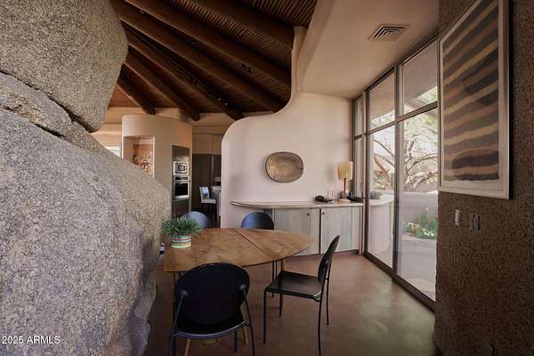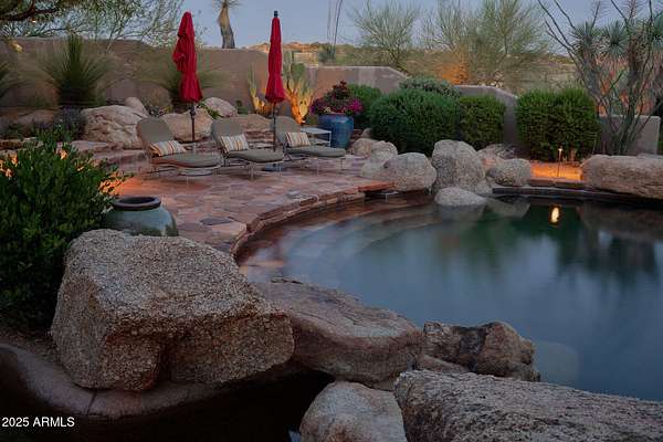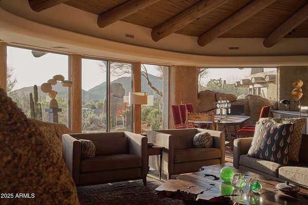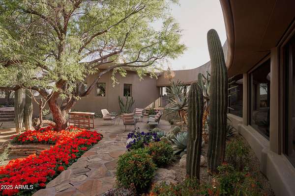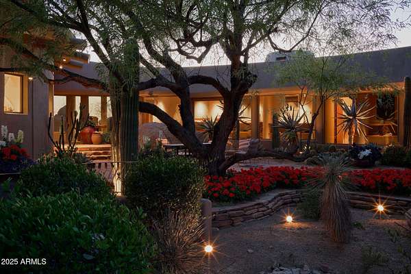 Architect Ron Brissette, former student of Frank Lloyd Wright captured Southwest magic when he created ''Las Rocas.'' Situated on 3 lots spanning 1.8 acres, gorgeous views of the Cochise golf course and city skyline generously lend their beauty. The 5,704 sqft main home is an entertainer's dream while the 1,280 sqft 2 bedroom casita is well-suited for multi-generational living or guests. The main living area features a dome skylight that allows the sun to gently land upon the strong granite boulders. Mahogany doors and Vigas & Latillas hemlock beams compliment the natural elements beautifully. Stunning outdoor landscape was designed by award-winner Donna Winters of Enchanted Garden Landscape. In addition, this home offers a rare opportunity to enjoy a Desert Mountain Lifestyle membership. Lifestyle Membership available to be purchased with this property. The transfer of the Membership requires the submittal of a Membership Application by the Buyer, which must be approved by the Desert Mountain Club's Board of Directors through a process that takes approximately thirty (30) days. Please reach out to Membership Sales at the Desert Mountain Club for details.