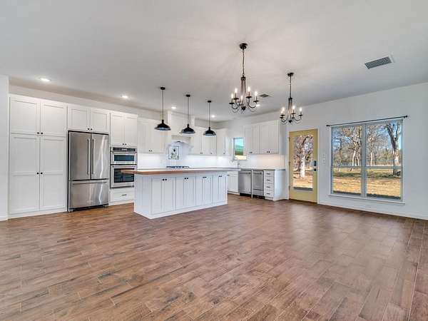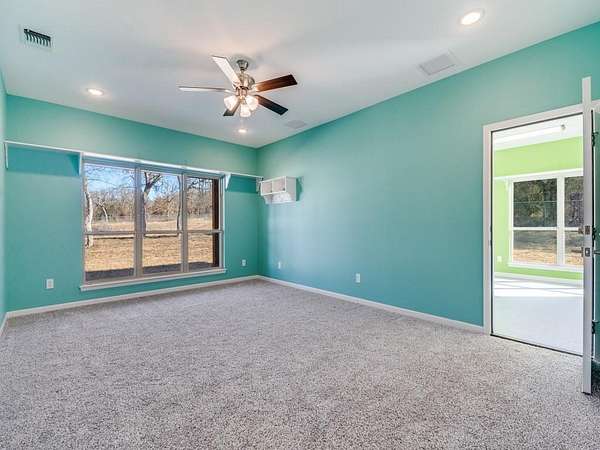 Built for buyers who value systems over finishes, this 3,000+ sq ft, one-story custom home , with a fully outfitted insulated shop sits on over 5 partially wooded acres with a dry creek and daily wildlife. The front three acres are fully fenced with 5-foot fencing and hog wire buried one foot deep, designed to block feral hogs while allowing deer and turkey movement. A solar-powered automatic gate controls access. Built in 2022, the property was designed for long-term performance, resilience, and control.