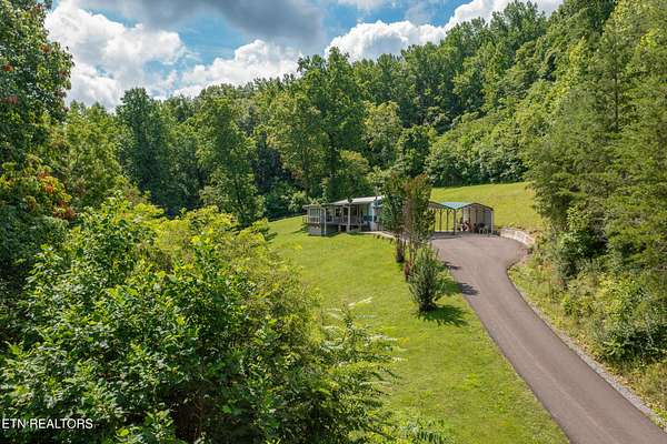 Discover the beauty and serenity of East Tennessee with this rare offering--31.33 acres of pristine, wooded land teeming with wildlife and endless potential. Tucked away in a peaceful setting, this property includes a well-maintained 2-bedroom, 2-bath 1995 single-wide mobile home on a permanent foundation, featuring a spacious sunporch (21.3 x 14.2 = approx. 300 sq ft, not included in total square footage), covered parking, and multiple outdoor sitting areas.