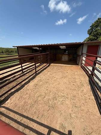 Developed over twelve years by the current owner, the ranch is fully perimeter-fenced and cross-fenced. The home site encompasses approximately five acres enclosed with no-climb pipe fencing and includes multiple stalls, tack and grooming areas, equipment storage, a 10' x 50' shipping container, two electrical RV hookups, improved access drives, and open pasture well suited for livestock or equestrian use. Ag-exempt. Additional outdoor amenities include a garden area, playground, zip line, firepit, and park-like creek bed.