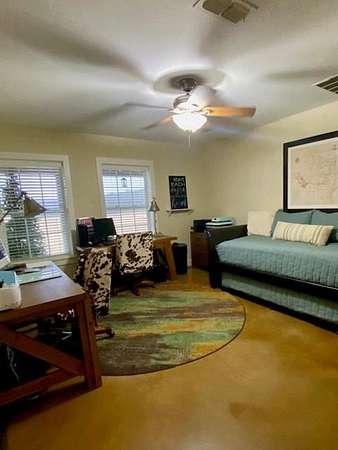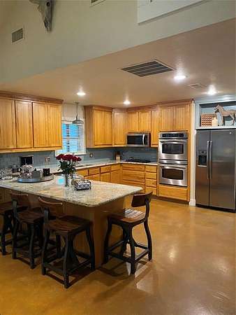 At the heart of the property is a 2,862 sq ft modern farmhouse barndominium offering privacy and sweeping views from a 60-foot covered front porch. The residence features three bedrooms, two bathrooms, multiple living areas, and an attached three-car garage with additional covered parking. Outdoor living is complemented by a six-bench swing gazebo with a propane fire pit...an ideal setting for sunset views.