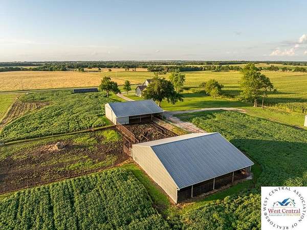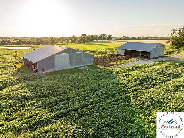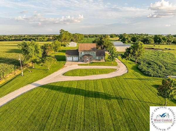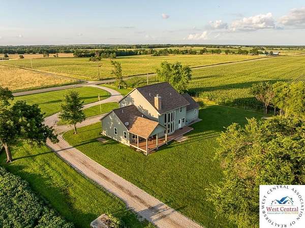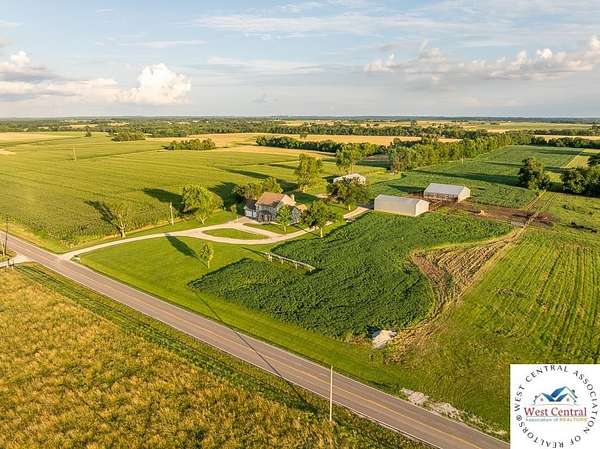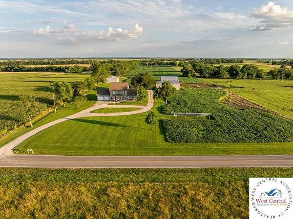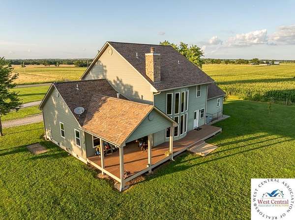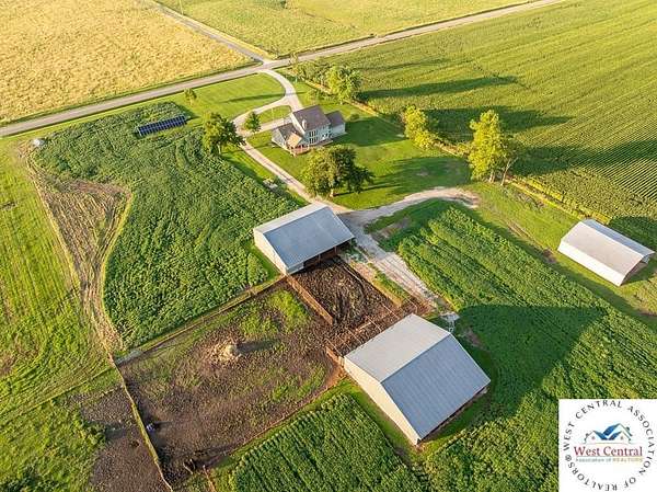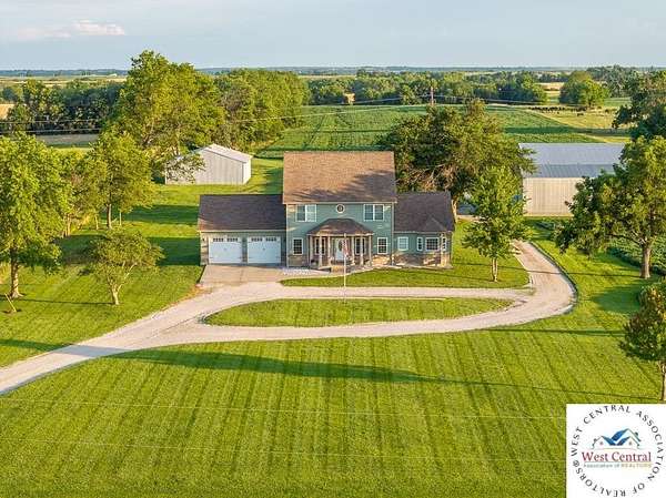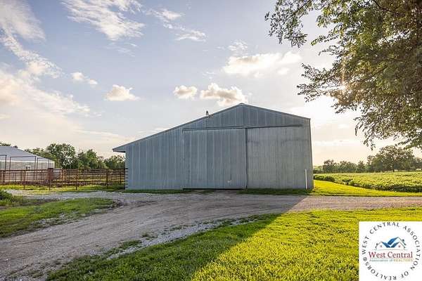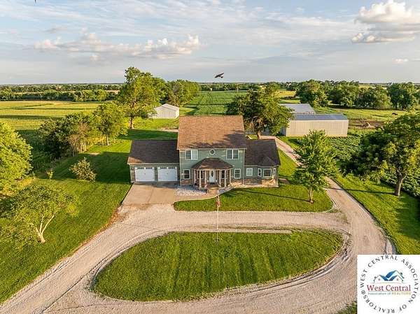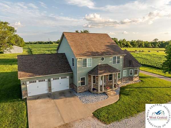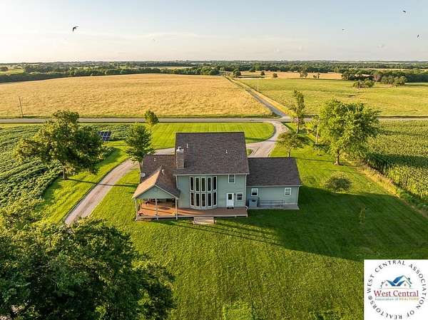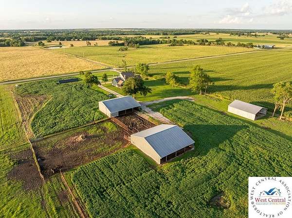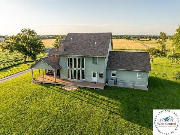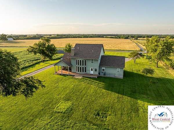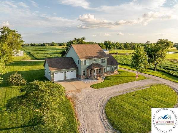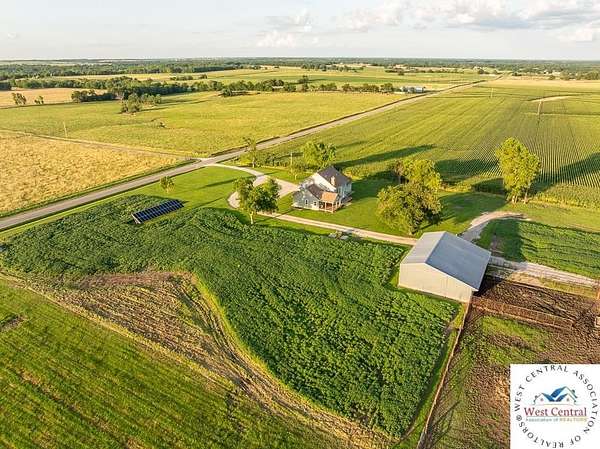 ADDITIONAL ACREAGE AVAILABLE! Nestled on 5 scenic acres east of Passaic on blacktop State Route D, this impressive 4-bedroom, 3-bath home offers the perfect blend of comfort, style, and functionality. Boasting 2,677 square feet across two stories, the home features high ceilings, hardwood floors, and detailed wood trim throughout, creating a spacious, light-filled layout. The main floor offers a large master suite and an open-concept kitchen complete with granite countertops, custom cabinetry, and a walk-in pantry. The upper level includes a loft-style common area and three generously sized bedrooms, perfect for family or guests. A walk-up unfinished basement offers flexibility for future expansion or storage, and the two-car garage adds practical convenience. Outside, enjoy the manicured lawn and large partially-covered deck, perfect for relaxing or hosting. A solar panel system adds energy efficiency and long-term value. For those with livestock or hobby farm dreams, the property is set up with two barns, a hay shed, and a welded pipe working system. The soil is very fertile, and outside the lawn, the ground is currently farmed. All of this is located in a quiet country setting just 50 minutes from the KC metro, and is within the Ballard School District. This well-maintained property checks all the boxes for rural living with modern convenience--don't miss your chance to make it yours.