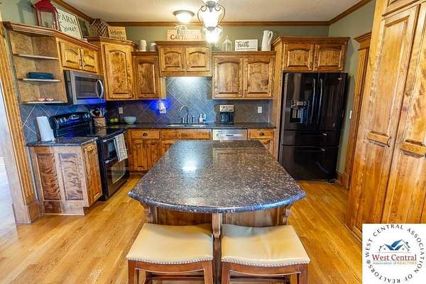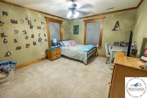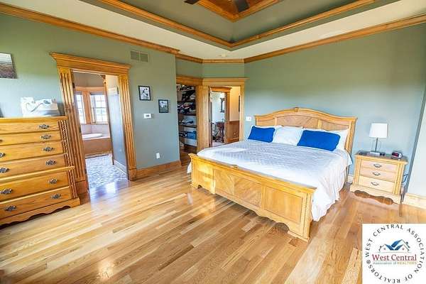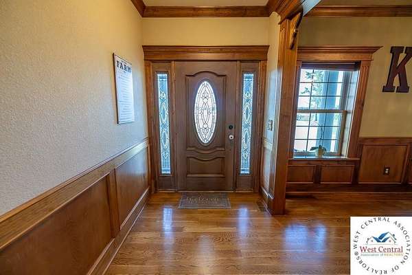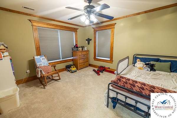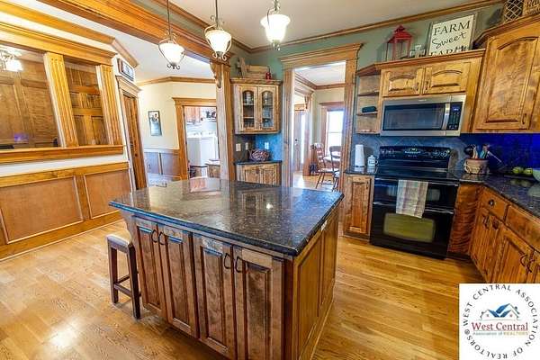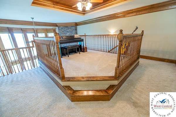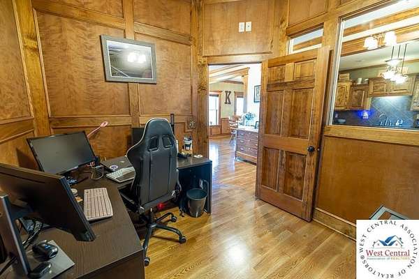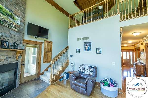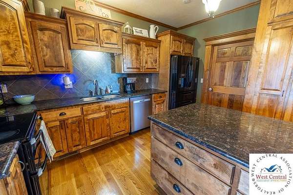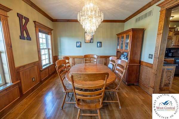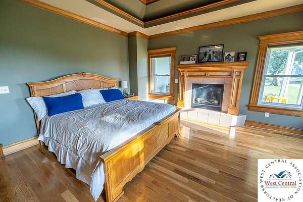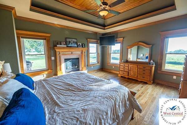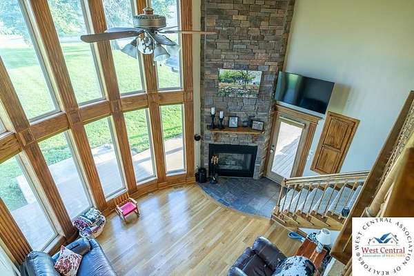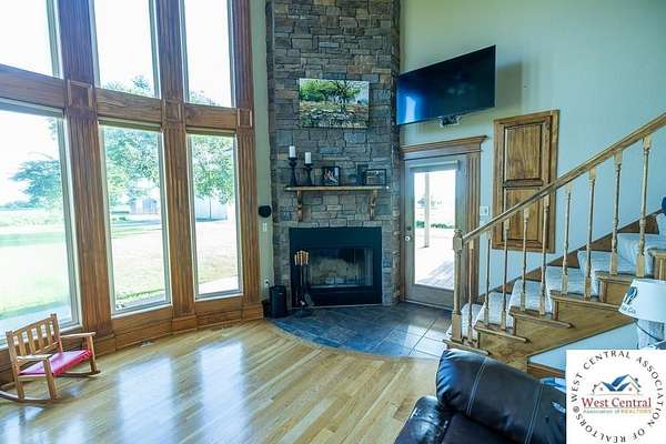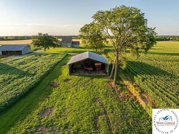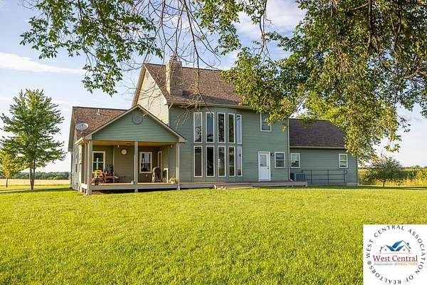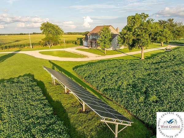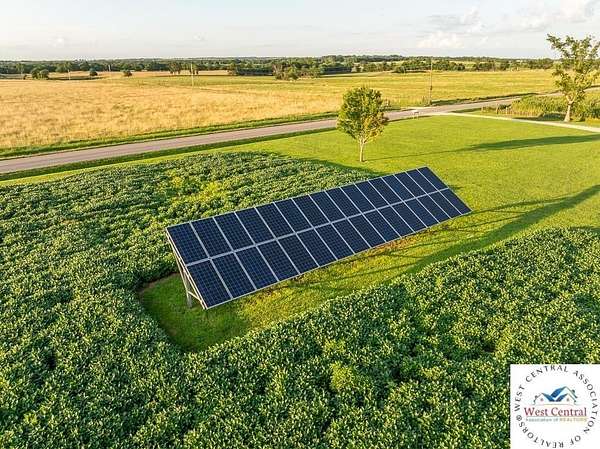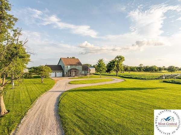 ADDITIONAL ACREAGE AVAILABLE! Nestled on 5 scenic acres east of Passaic on blacktop State Route D, this impressive 4-bedroom, 3-bath home offers the perfect blend of comfort, style, and functionality. Boasting 2,677 square feet across two stories, the home features high ceilings, hardwood floors, and detailed wood trim throughout, creating a spacious, light-filled layout. The main floor offers a large master suite and an open-concept kitchen complete with granite countertops, custom cabinetry, and a walk-in pantry. The upper level includes a loft-style common area and three generously sized bedrooms, perfect for family or guests. A walk-up unfinished basement offers flexibility for future expansion or storage, and the two-car garage adds practical convenience. Outside, enjoy the manicured lawn and large partially-covered deck, perfect for relaxing or hosting. A solar panel system adds energy efficiency and long-term value. For those with livestock or hobby farm dreams, the property is set up with two barns, a hay shed, and a welded pipe working system. The soil is very fertile, and outside the lawn, the ground is currently farmed. All of this is located in a quiet country setting just 50 minutes from the KC metro, and is within the Ballard School District. This well-maintained property checks all the boxes for rural living with modern convenience--don't miss your chance to make it yours.