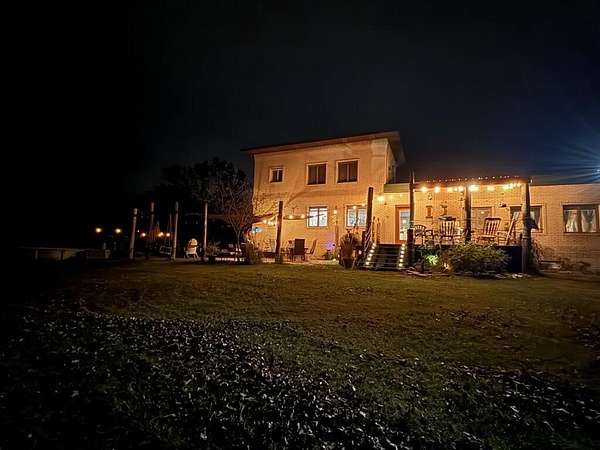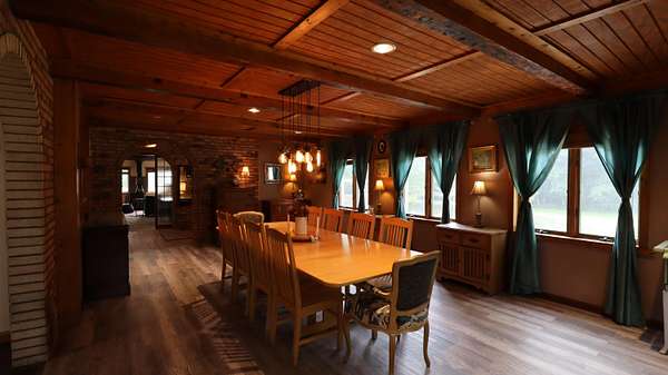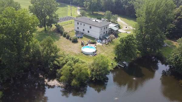 Experience Old World Elegance on 21 Private Acres with stocked pond! Step into a timeless European-inspired estate nestled on 21 secluded acres with a serene pond, rolling green space, and a full solar panel grid. This 5,300 sq ft masterpiece features 4 spacious bedrooms, 3.5 luxurious baths, and a dramatic central great room with soaring vaulted ceilings adorned with fresco-style artwork. Designed for both everyday comfort and unforgettable entertaining, the Old World kitchen blends charm and functionality with custom cabinetry, tile accents, and a rustic aesthetic that evokes countryside villas. Dining Room will accomodate the largest of gatherings. Family room has Wood burning Stove & Built ins from the Chicago Board of Trade. Artistic elements thoughout this home.. The primary Bedroom overlooks pond with walk-in closet and private bath with double custom sinks and double shower head shower. Main floor also has a guest/related living bedroom, plus office and media room. A full 3,908 sq ft walk-out basement offers endless possibilities for recreation, wine storage, or expanded living. Outdoor living is equally enchanting: dine al fresco on the large patio with a built-in pizza oven, or relax on the elevated deck overlooking the private pond and countryside views. Walk amongs your grape vines on the way to the barn. Equestrian-ready with a barn/stable, hay elevator, and additional outbuildings for hobby or storage use. Truly a rare blend of European charm and modern sustainability in a peaceful, private setting. Upgrades: IMPROVEMENTS: form attached...
