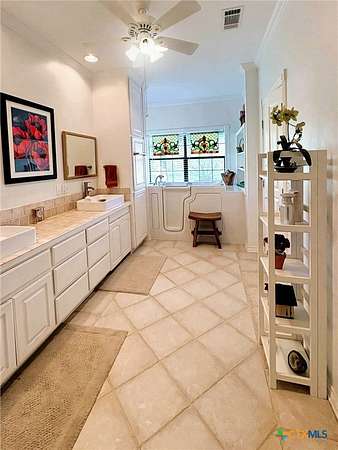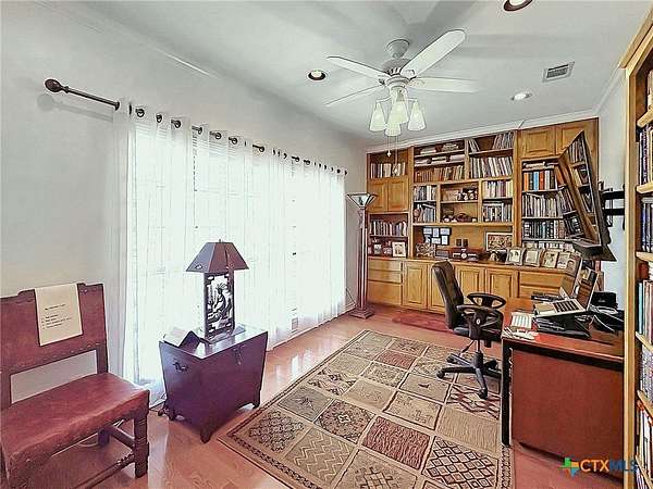 - Bookcases, Built In Features, Ceiling Fans, Crown Molding, Custom Cabinets, Double Vanity, Entrance Foyer, Granite Counters, Kitchen Dining Combo, Kitchen Family Room Combo, Kitchen Island, Kitchenette, Multiple Living Areas, Natural Woodwork, Pantry, Recessed Lighting, Separate Shower, Split Bedrooms