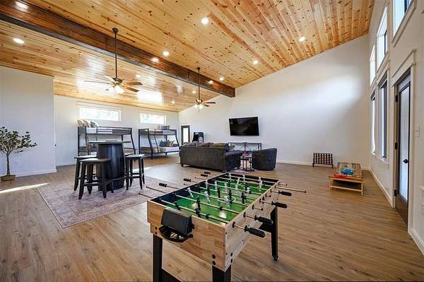 Unique construction on a large 2 bedroom with bunkroom and game room located on a cul-de-sac in Timber Creek Trails South X. Open concept in the kitchen/living area. 2 master suites with large showers and granite countertops, tile flooring. Plenty of covered porches with a fireplace for evening entertainment. Rock Fire pit, Lots of room for the price. This is an ideal cabin for entertaining and family fun. Only minutes from all area attractions including the new Choctaw Landing casino, Mountain Fork Brewery, Broken Bow Lake and Marina. Beavers Bend State Park provides hiking trails, paddle boats, Kayaking, train rides and much more. Sleeping capacity up to 10 guests Good income producing property.