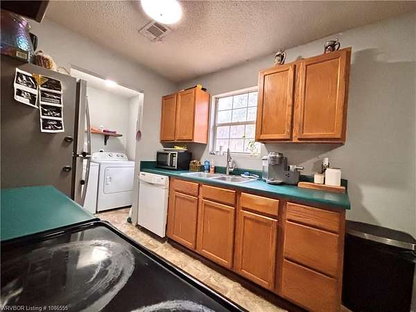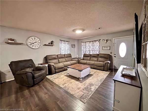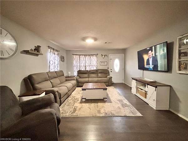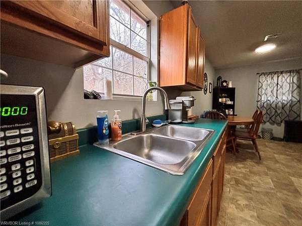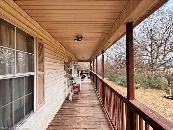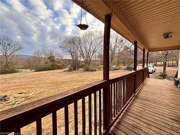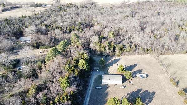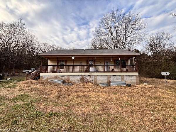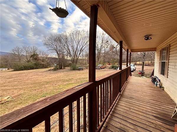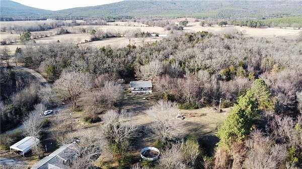 This property features a 3 bed and 2 bath home sitting on 5 +/- acres. The living area is open to the dining, galley style kitchen and a laundry room with a door leading to the back of the home. The back half of the roof was replaced in 2021, the heat and air unit were replaced in 2021, water heater replaced in 2022. The septic pumped in 2020 and is located on the side of the home with a rock marking the location. There is some attic storage. Full length porch with Poteau Mountain views. There is a second spot for a home (current mobile home does NOT convey) electric, water, and septic is in place. The driveway to the mobile is not part of the sale. Agent/Brokerage does not measure the home square footage; it is an estimate only.