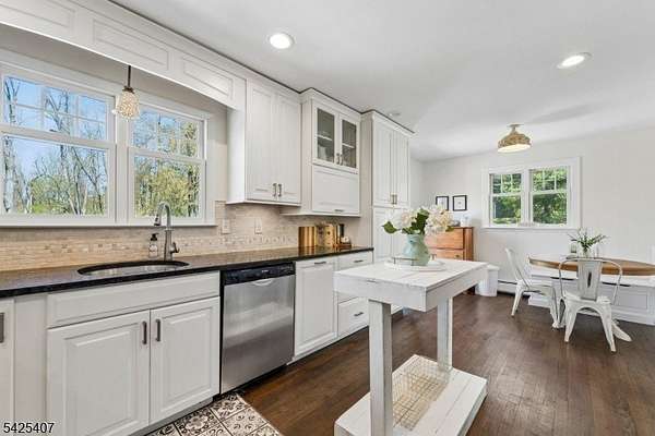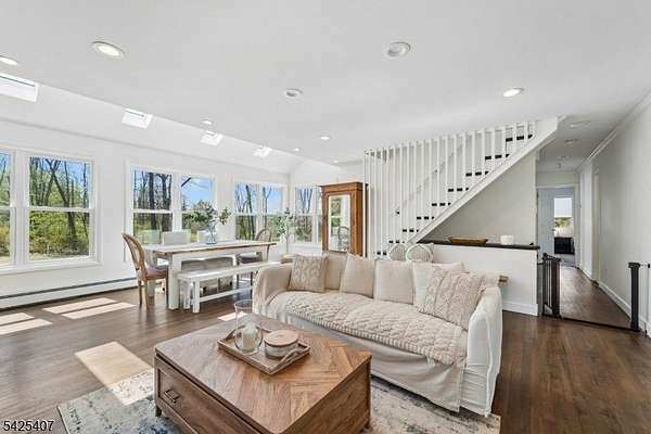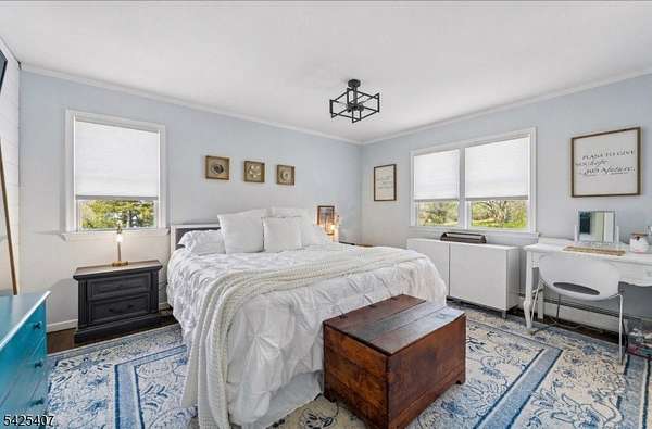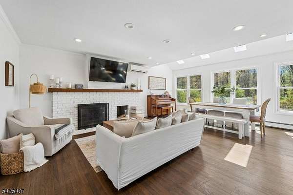 Nestled in scenic Long Valley with a Califon address, this modern farmhouse offers an open layout filled with abundant natural light, three bedrooms plus an office and playroom/gym. The beautiful eat-in kitchen is ideal for everyday living and entertaining. A private, oversized third-floor room with skylights provides the perfect retreat, while the ground floor features a possible in-law suite with a separate entrance, kitchenette, and bath. Step onto multiple-level decks, including a great entertaining deck, all with captivating mountain views. Set on a private 1.8-acre lot, this home offers a true park-like setting. Includes a generator hookup for added peace of mind, and second-floor bedroom furniture can be included if desired. Convenient to hiking and biking paths, restaurants, and highways. Brand new primary bathroom! Great views!