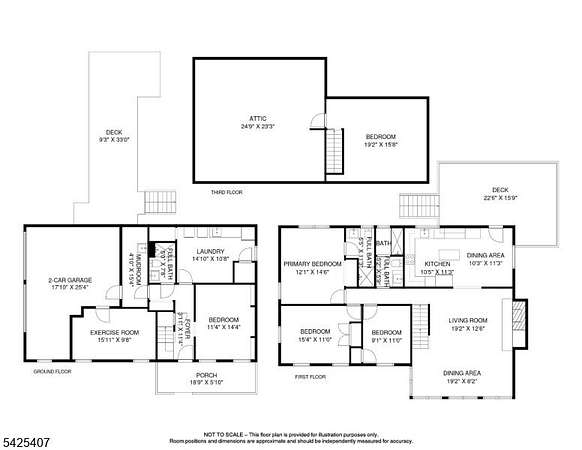 - Bathroom x 3, Bedroom x 3, Dining Room, Family Room, Kitchen, Laundry, Living Room, Loft, Office