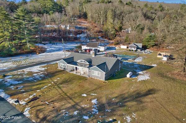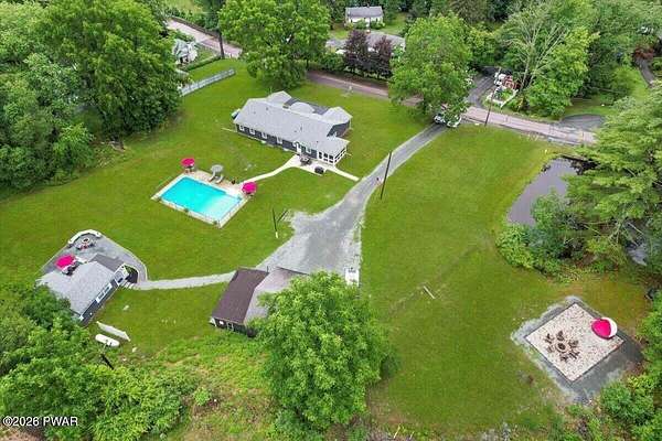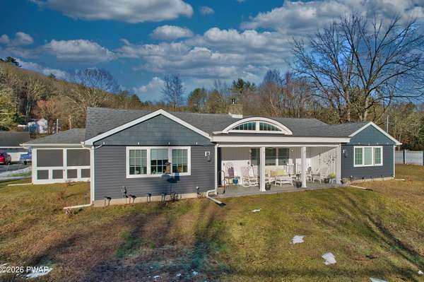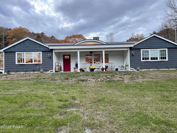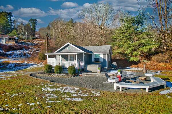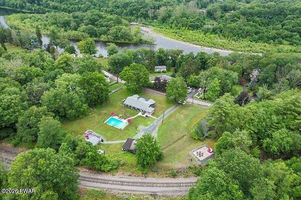 Beautifully remodeled ranch set on nearly two acres with seasonal views of the Delaware River and just a short walk to river access for swimming or tubing. This exceptional property offers the perfect blend of comfort, nature, and income potential.The grounds feel like a private mini-farm, featuring a picturesque pond, organic raised-bed garden with established asparagus, rhubarb, grapevines, and berries. An Amish-made, fenced in chicken coop with five egg-laying hens adds to the charm. Mature perennials abound, including butterfly bushes, Rose of Sharon, lilac, and rhododendrons. The main home ands the cottage are hard wired for back up Generators. There is a 4 car garage.Outdoor living shines with a large patio and fire pit, a spacious gazebo on a floating deck ideal for entertaining, and a beautiful in-ground pool. Relax year-round in the hot tub located in a three-season room attached to the main house.A separate guest cottage offers its own hot tub and provides excellent flexibility--perfect for extended family, guests, or use as an Airbnb or rental opportunity.Inside, the home features three bedrooms and two full baths, Hardwood floors, gourmet Kitchen, cozy wood burning fireplace insert for your chilly days and nights. A lovely walk-in closet in your primary bedroom. The design is modern and contemporary with a tasteful touch of old-world charm throughout. New upgrades include Propane furnace, New pool Filter, Wood burning Fireplace insert. incredible walk in 25X16ft Garden. Floating Deck with Solar lighted Gazebo.This is a rare opportunity to own a serene retreat with resort-style amenities, income potential, and easy access to the Delaware River.